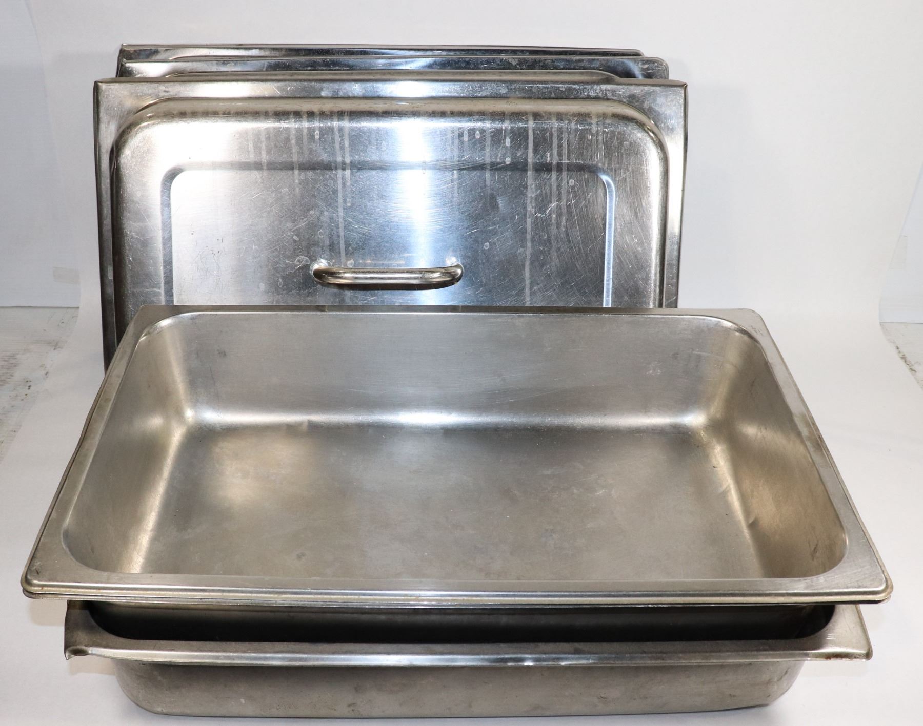 3 FULL SIZE STAINLESS STEEL INSERTS WITH LIDS
