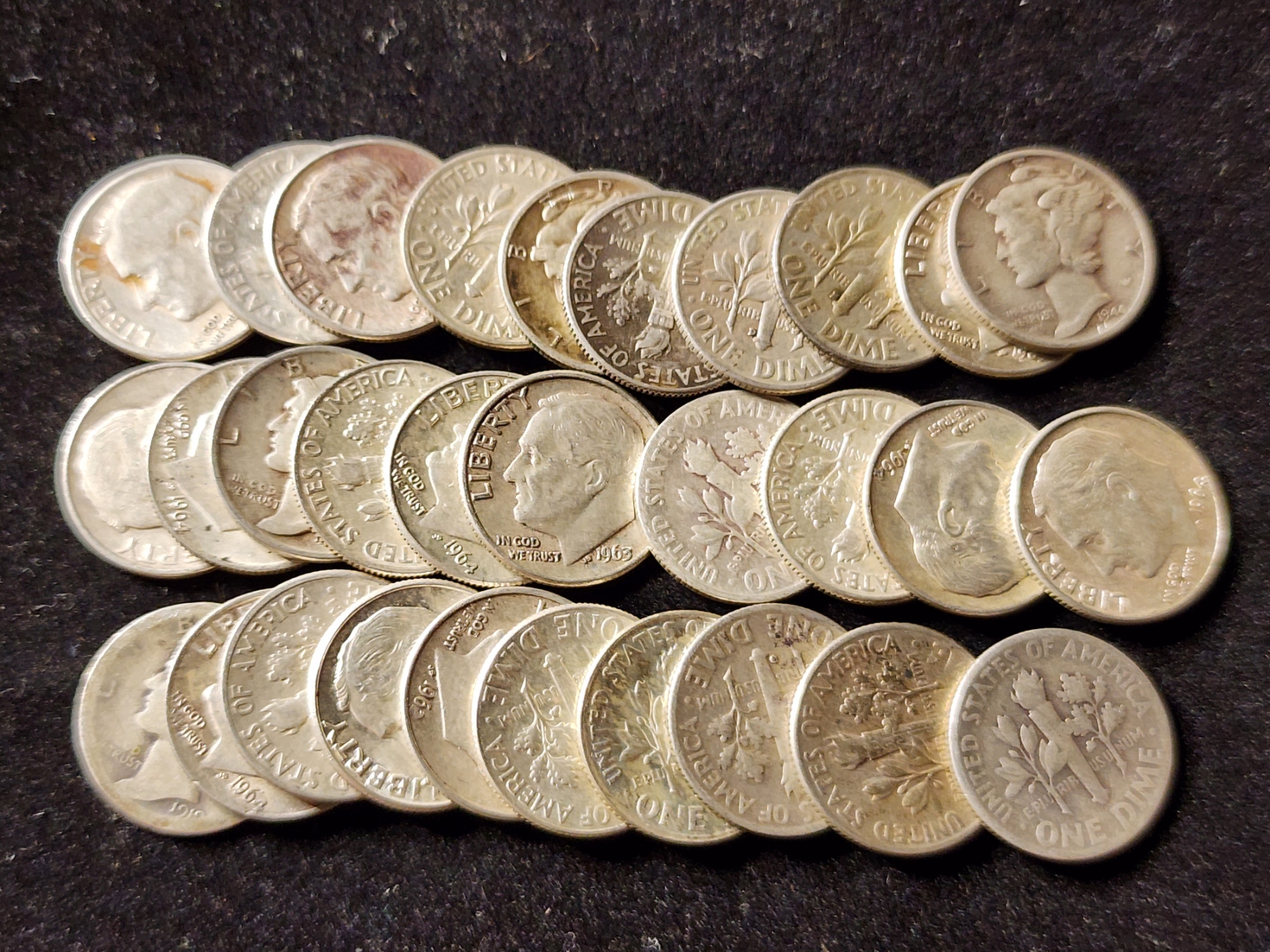 $3 Face Value in Assorted 90% Silver Dimes