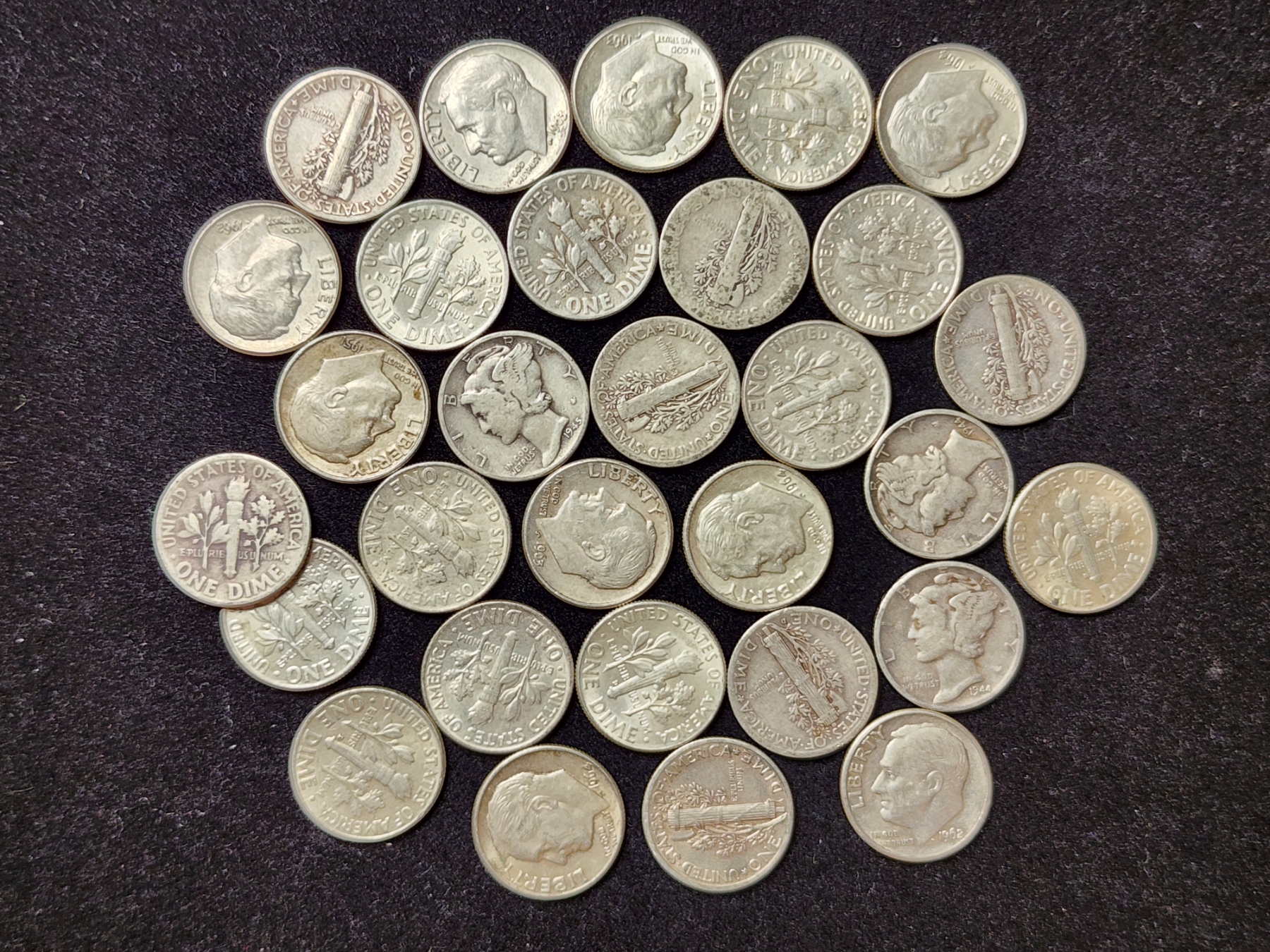 $3 Face Value in Assorted 90% United States Silver Dimes