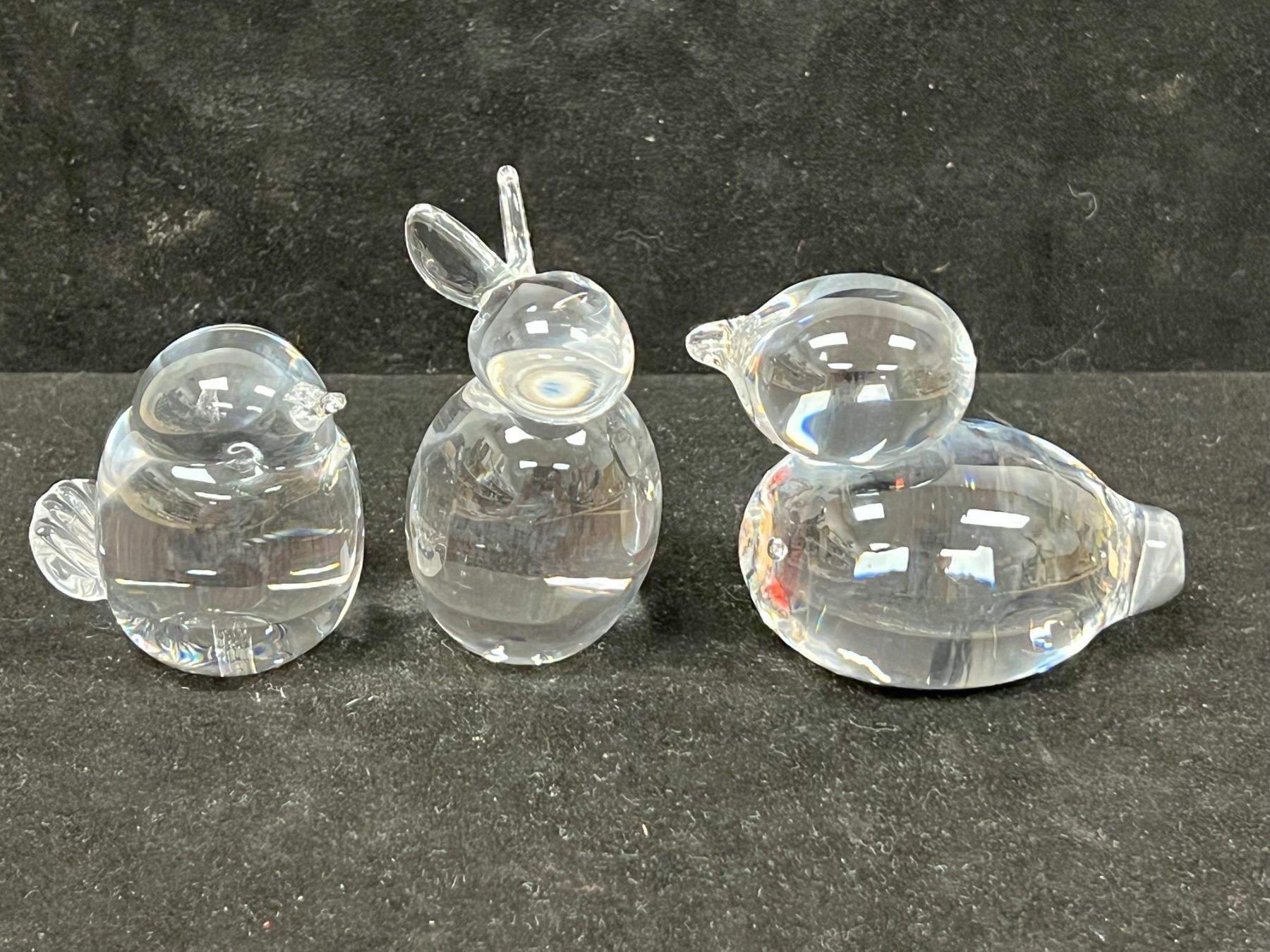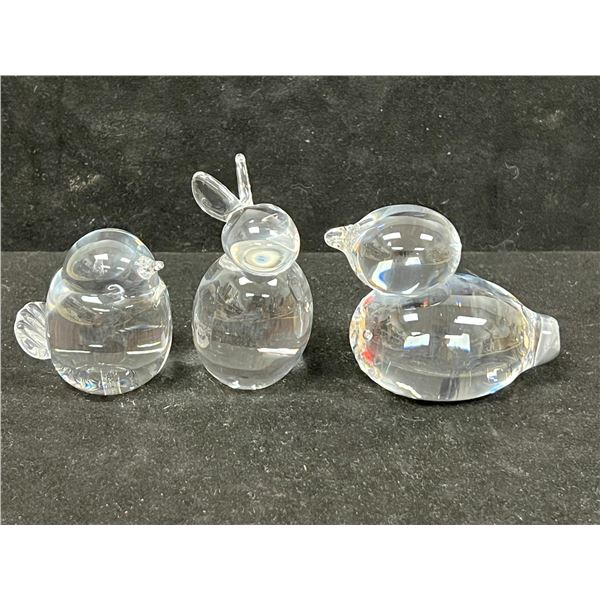 3 Figural Art Glass Paperweights - Bird / Rabbit / Duck - Tallest about 3"