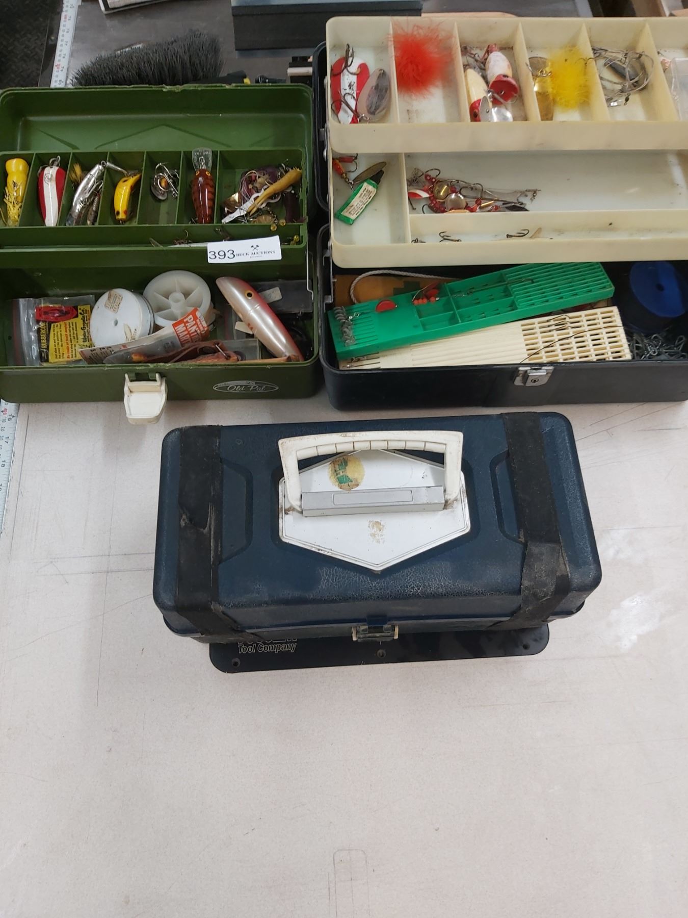 3 Fishing Tackle Boxes with Contents. 1 of the 3 boxes is a Myster box. Taped Closed