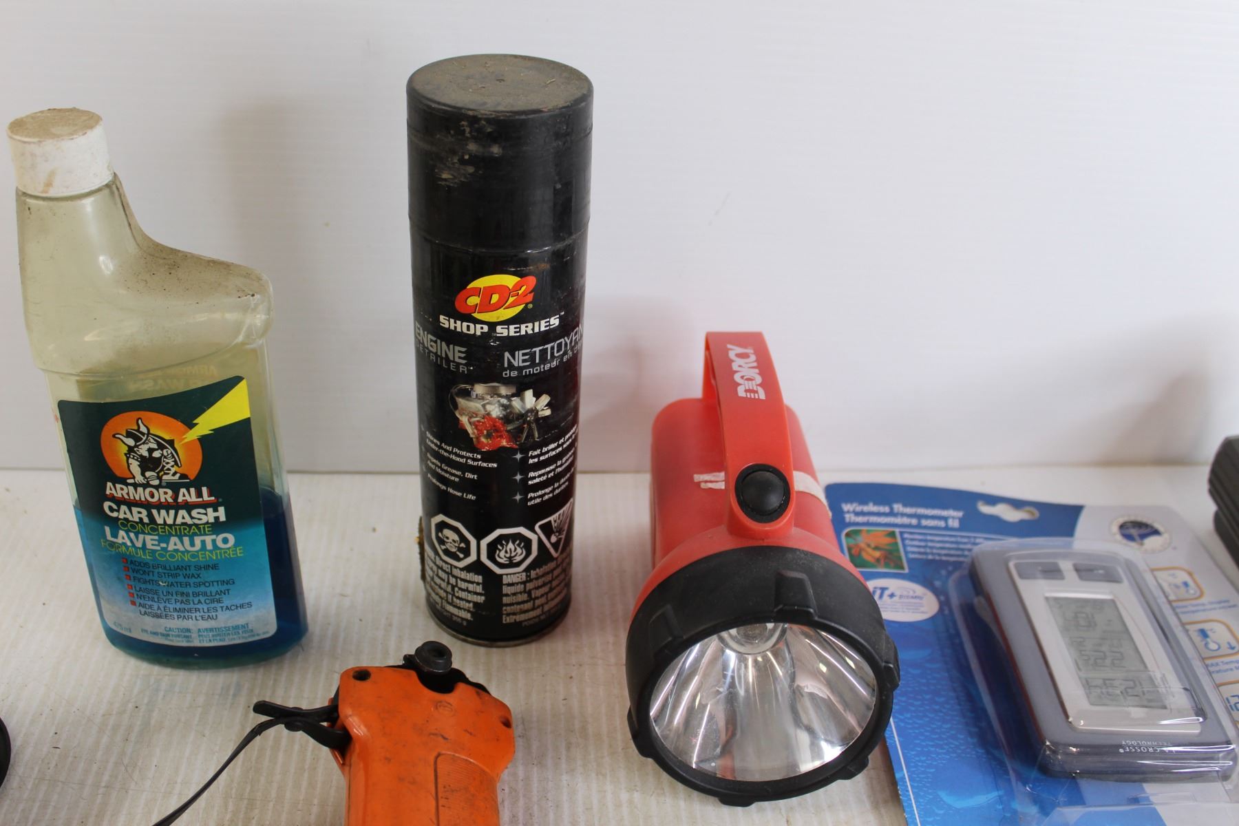 (3) Flashlights - Untested, Car Wash Concentrate, Misc.