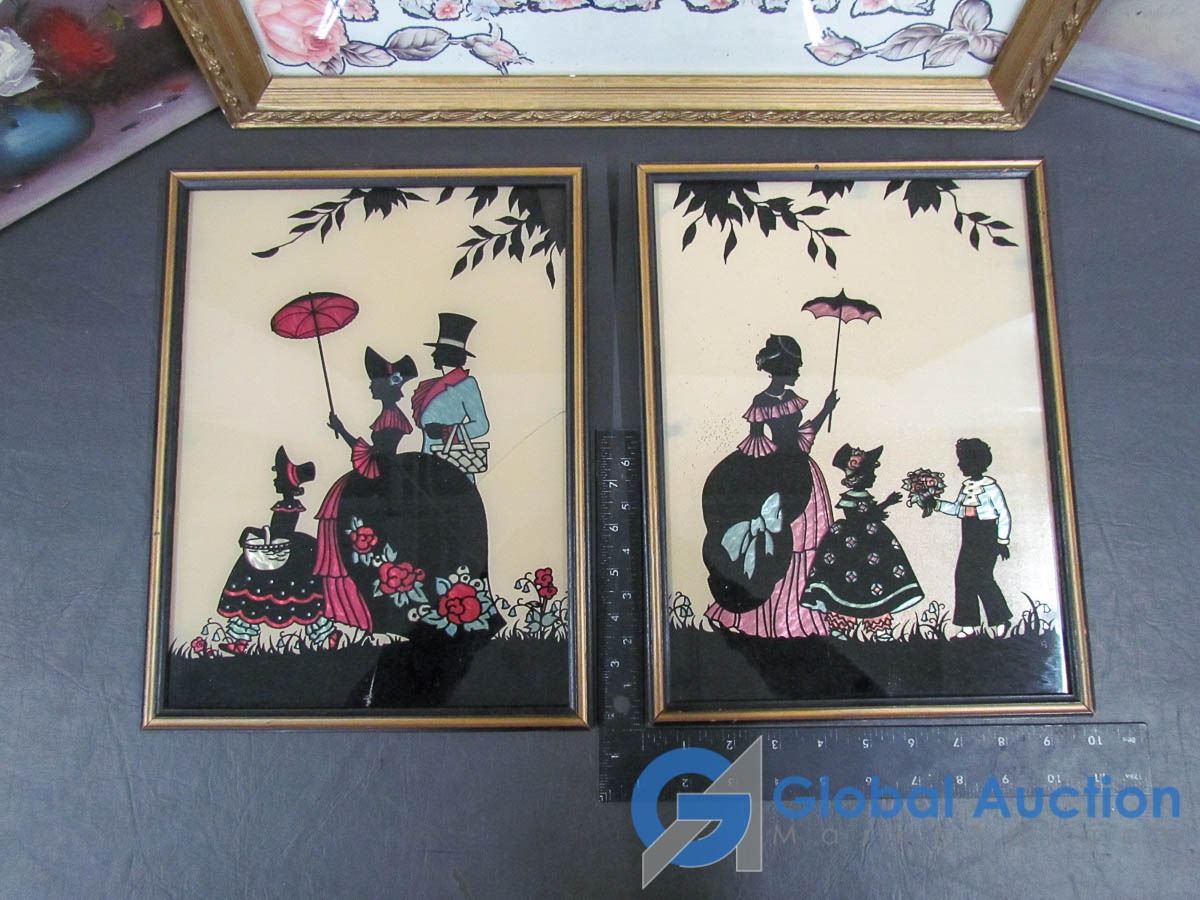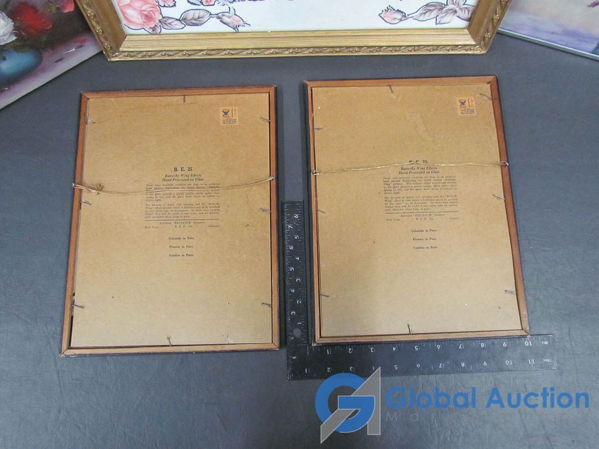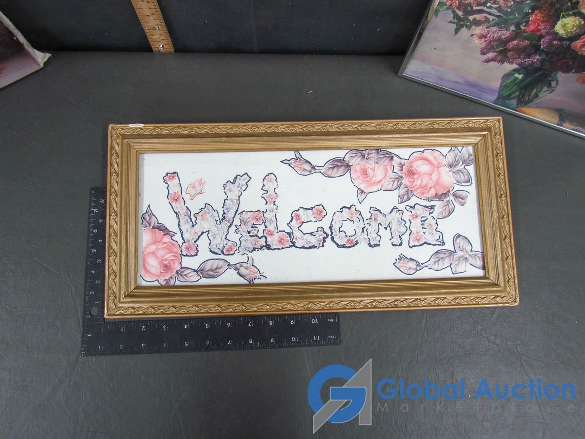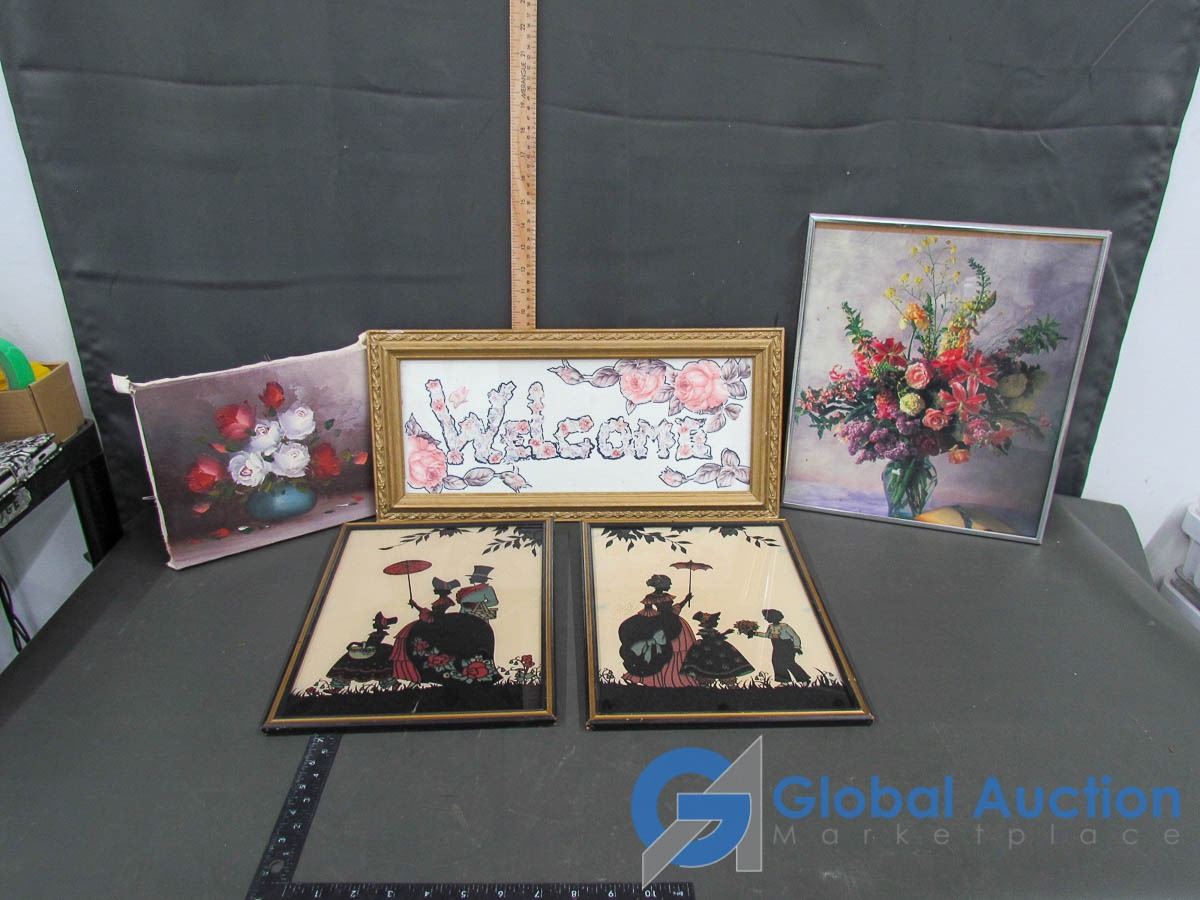 (3) Floral Wall Decor and (2) Colonial Glass (one with crack)