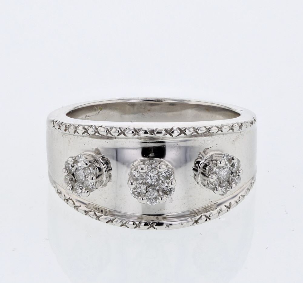 3 Flower Diamond Ring w/ Engraving in 14K White Gold