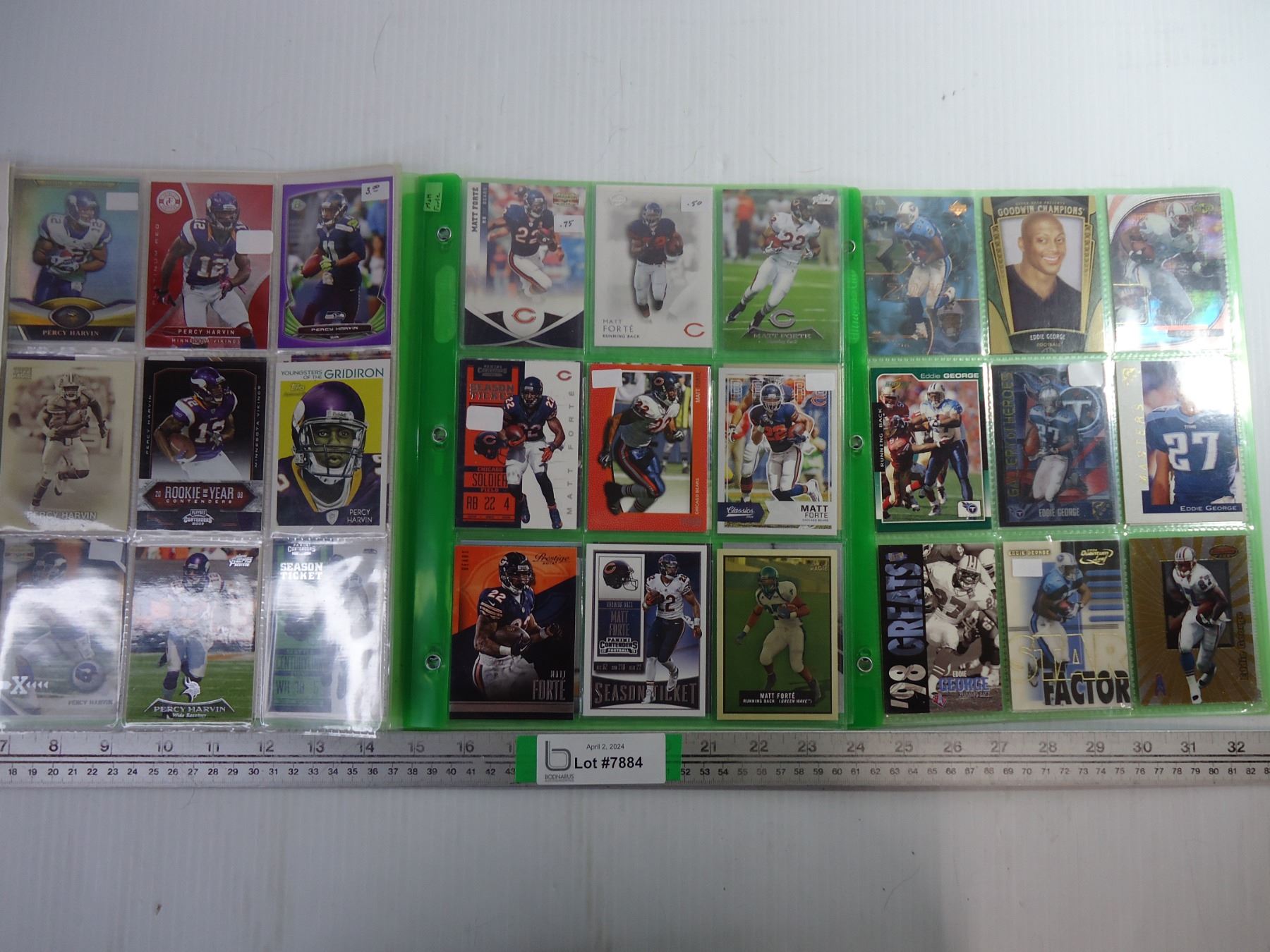 (3) Folders of Cards Featuring NFL Players Percy Harvin, Matt Forte, and Eddie George (6 sheets in t