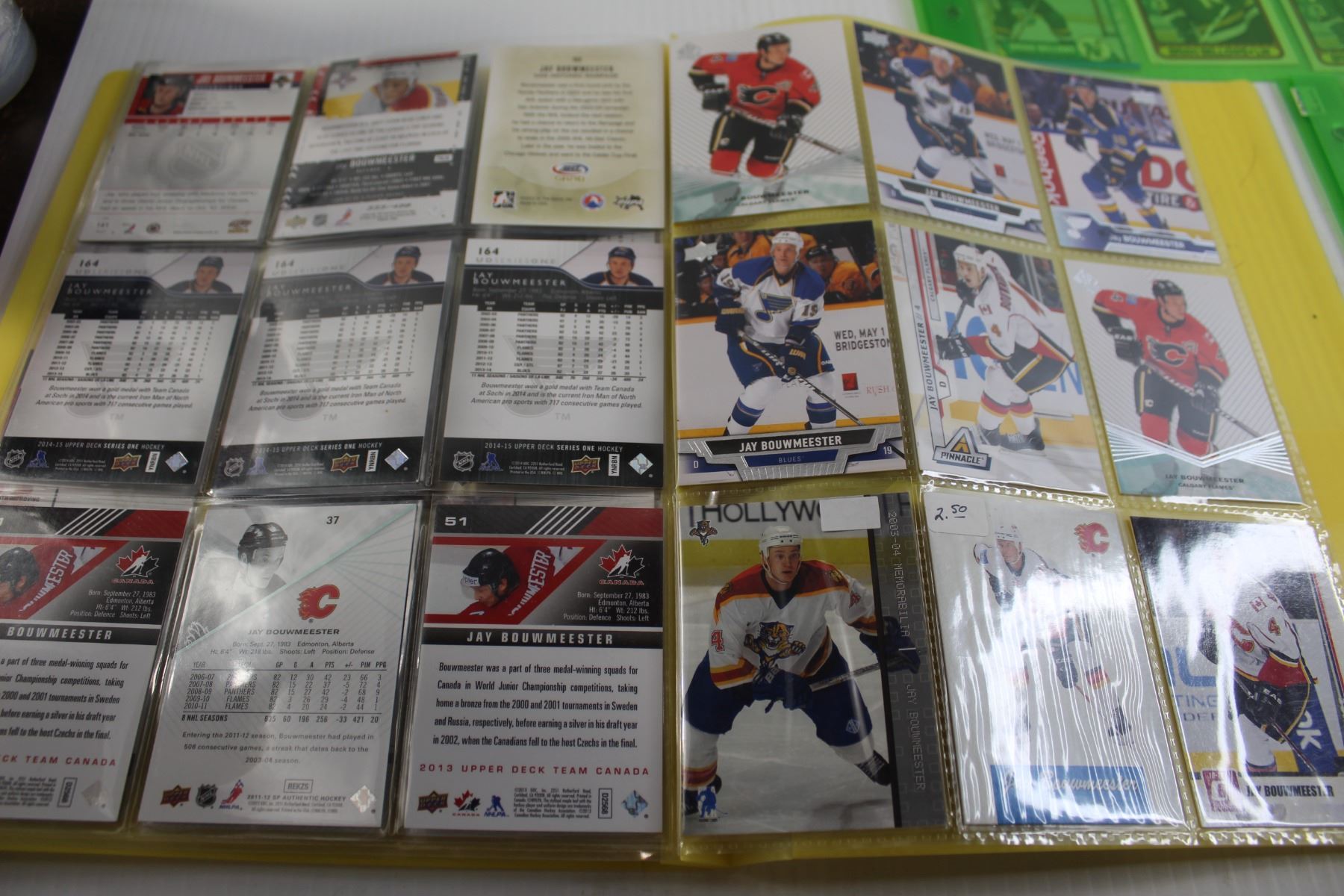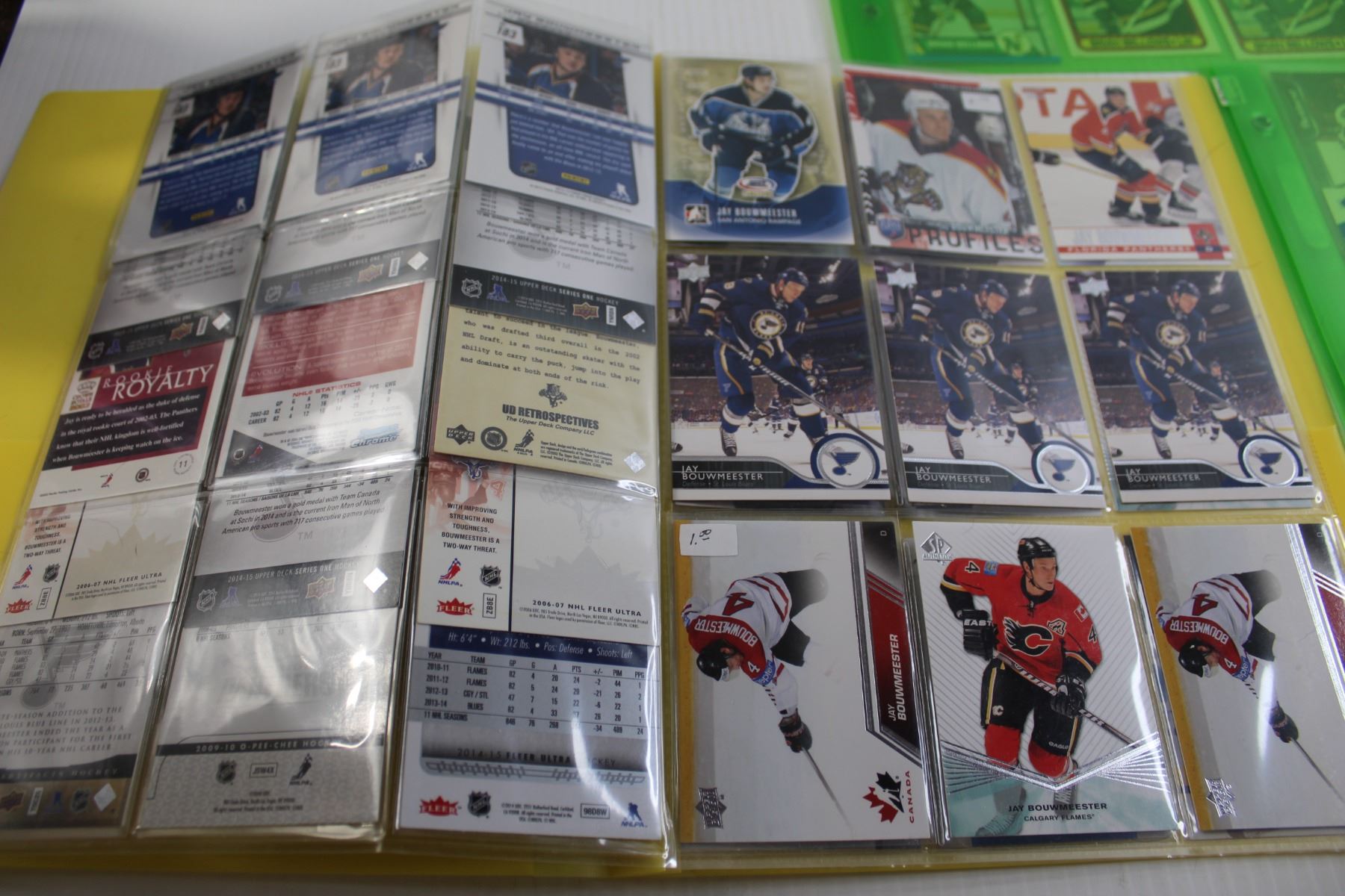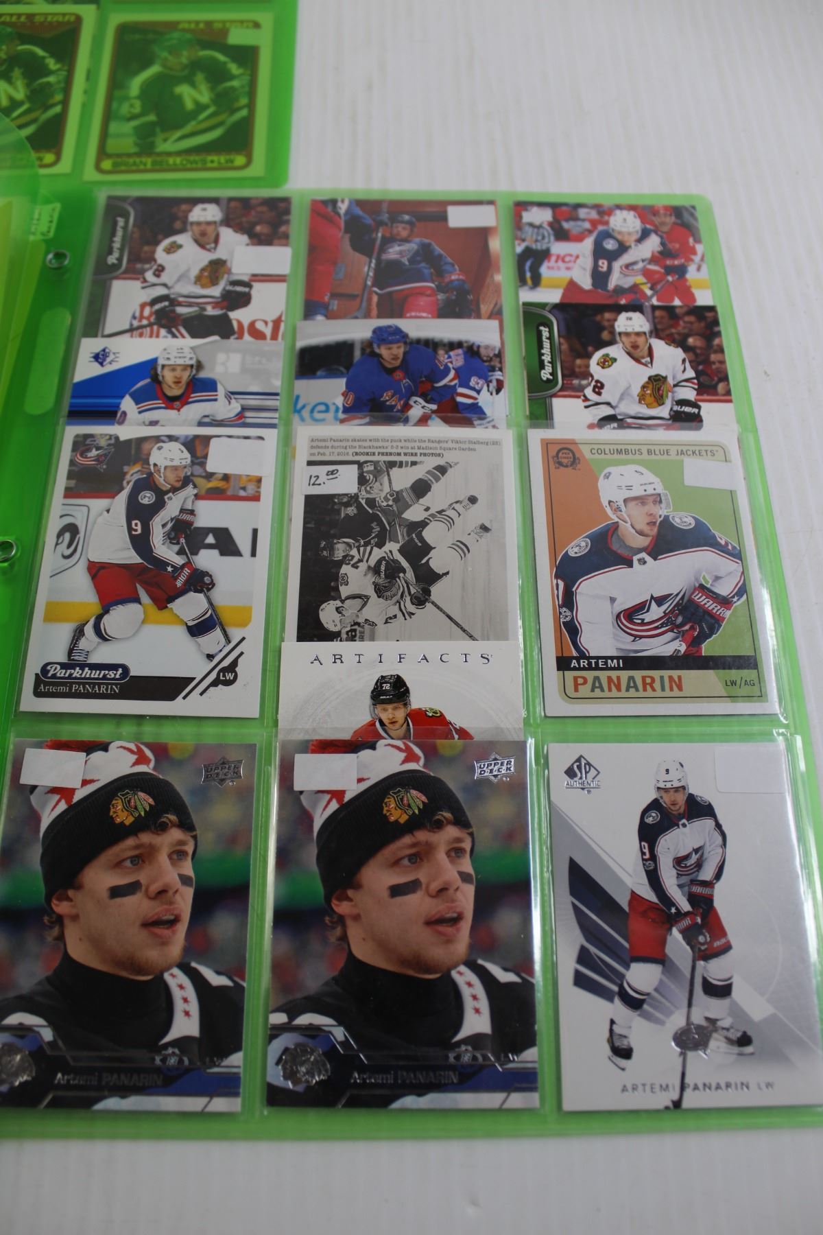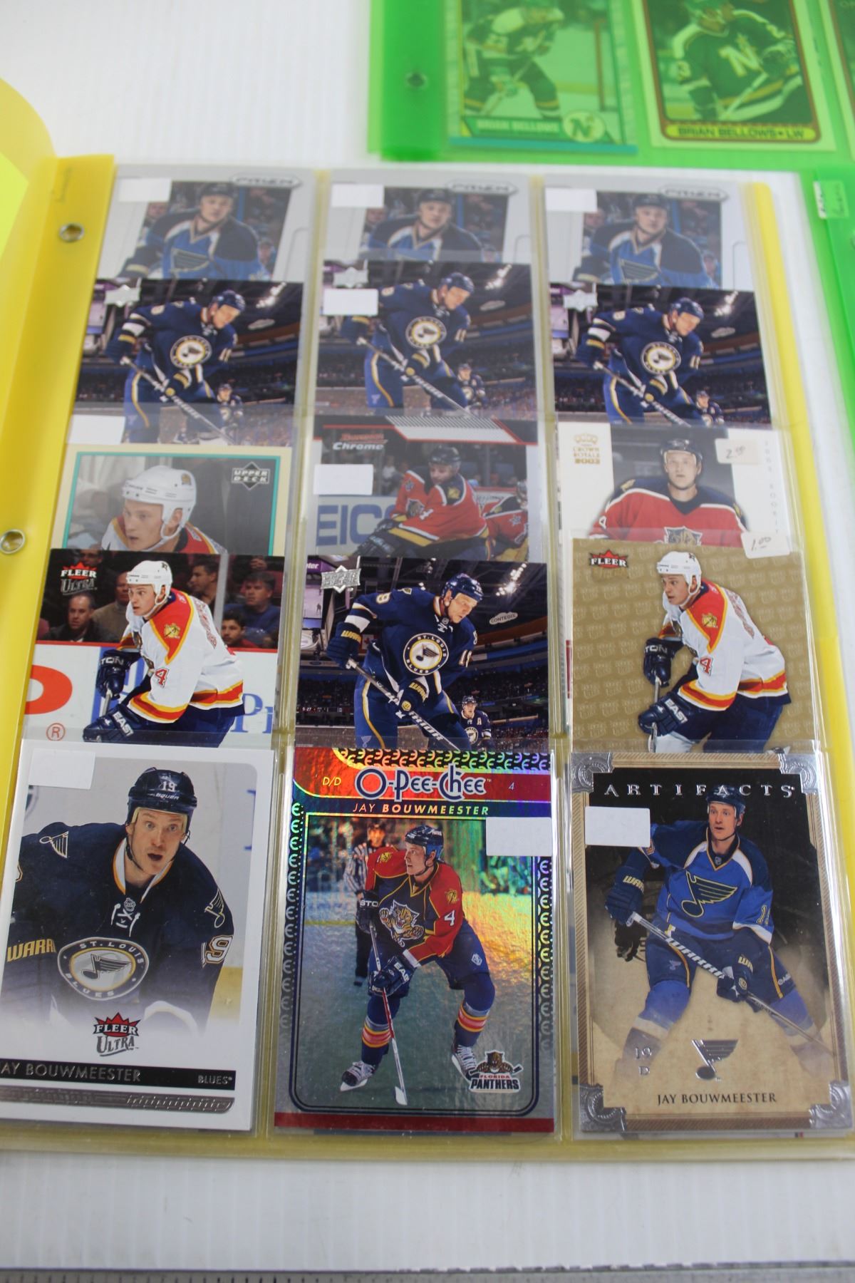(3) Folders of Jay Bouwmeester, Brian Bellows, and Artemi Panarin Hockey Cards - (5) Pages Total