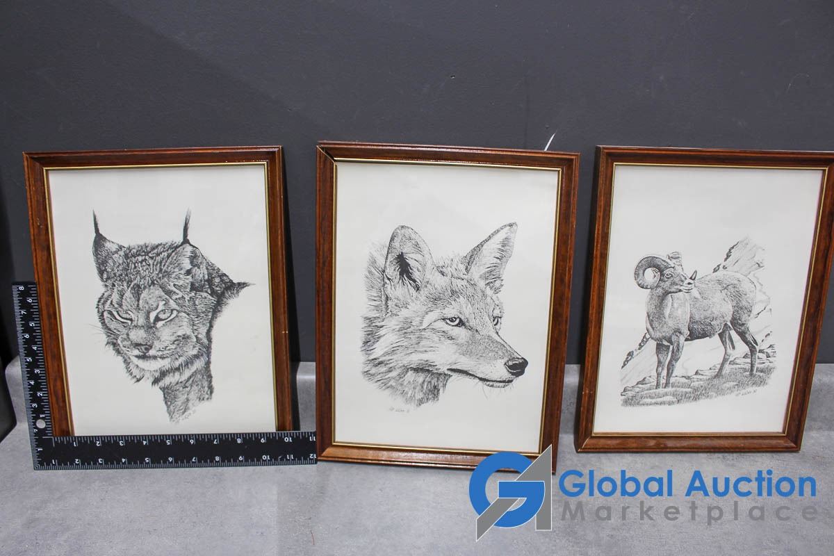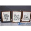 (3) Framed Animal Drawing Signed by HAP Wilson