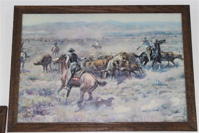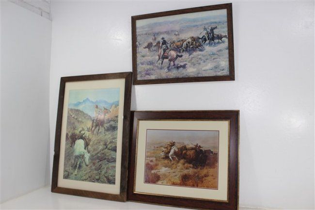 approx 39" x 27", charles russell print Indians approx size 32" x 21 1/2", charles russell print Montana approx size 32 1/2" x 21"
