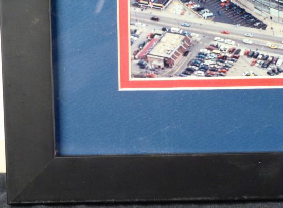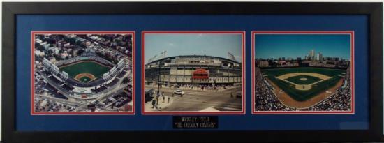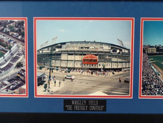 Here's a set of 3 beautiful 8" by 10" color photos of the Friendly Confines!Framed dimensions 14 x 38 Beautiful double cut Cubs blue and red mat Sleek black frame (slight edge wear to frame) Imprinted nameplate The perfect gift for the Cubbies fan!