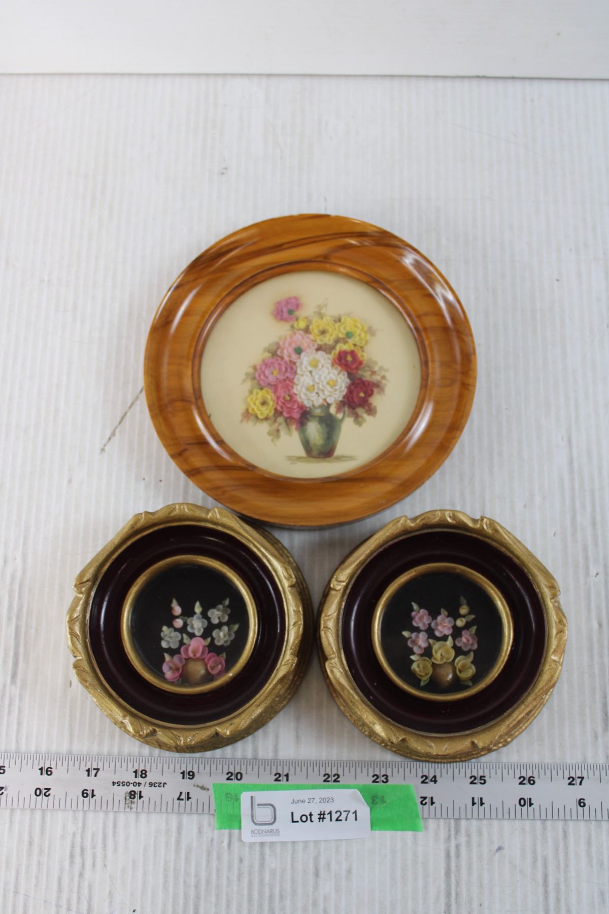 (3) Framed Pieces of Sea Shell Art - 5" Diameter and 7 1/4" Diameter