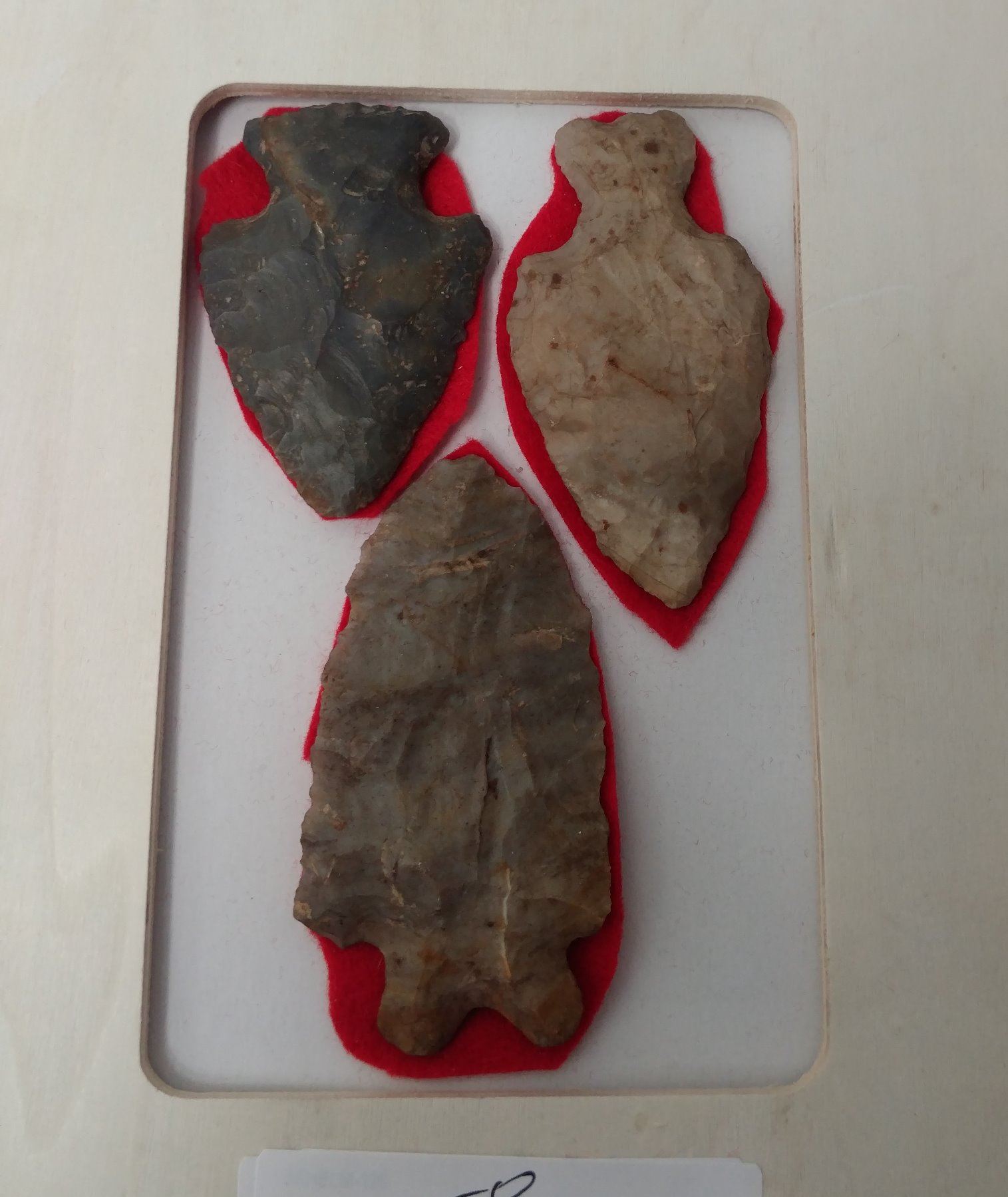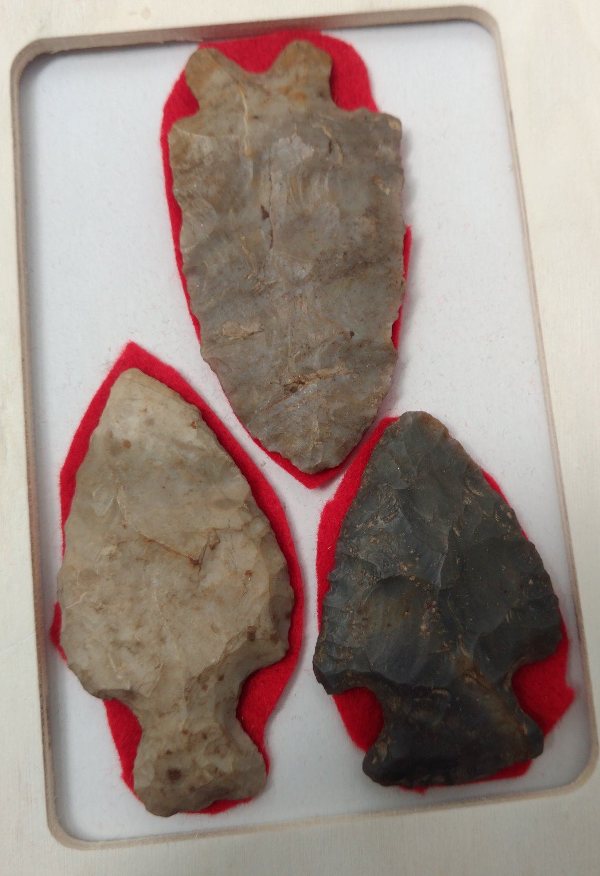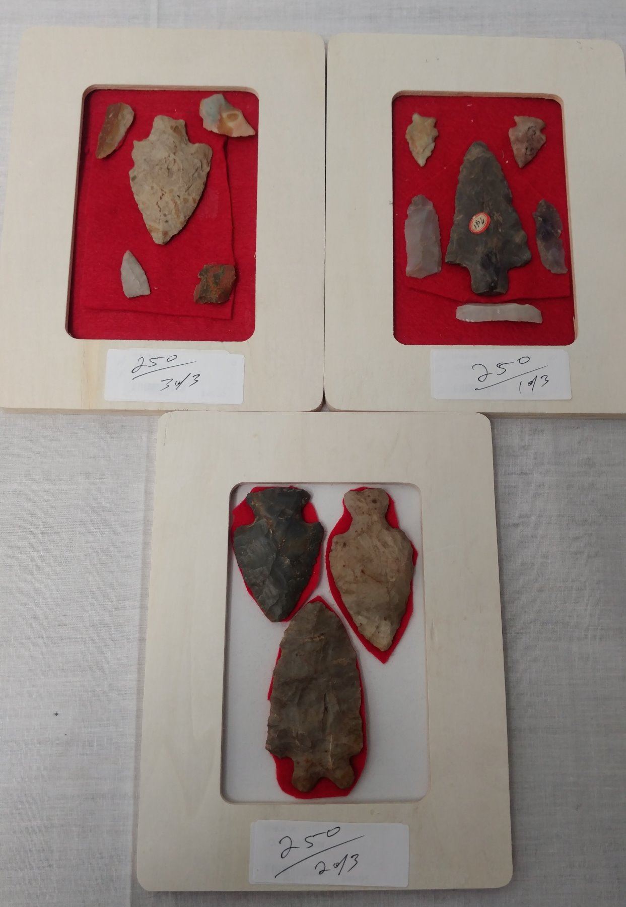 3 Frames of Ohio Flint, Hopewell period items. Made of chert and flint, the longest item measures 3 1/2". Ross County, Ohio. Frames included. Condition: As found, see images. Shipping: $22.50 w/insurance and signature.