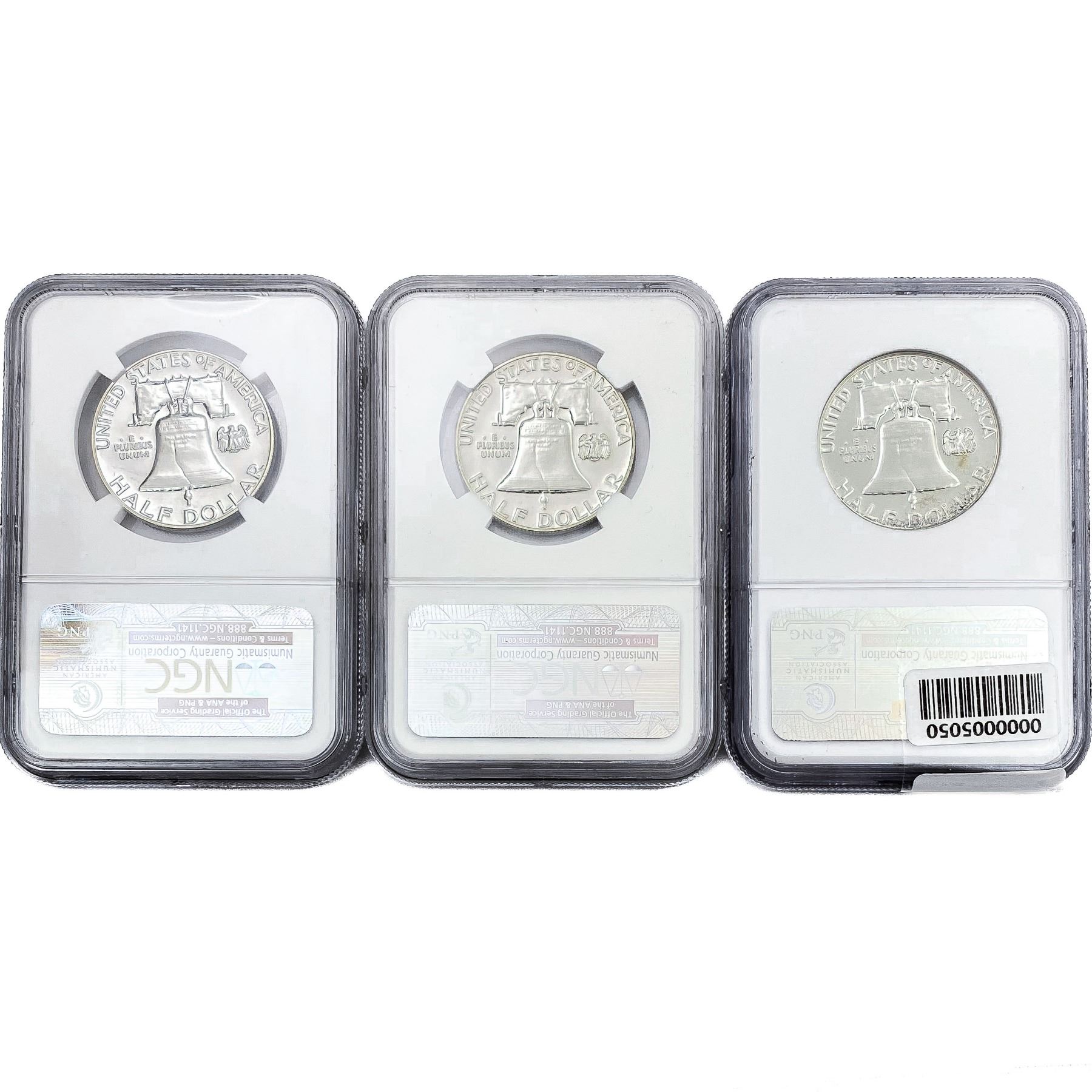 (3) Franklin Half Dollars NGC PF67 1957-1962