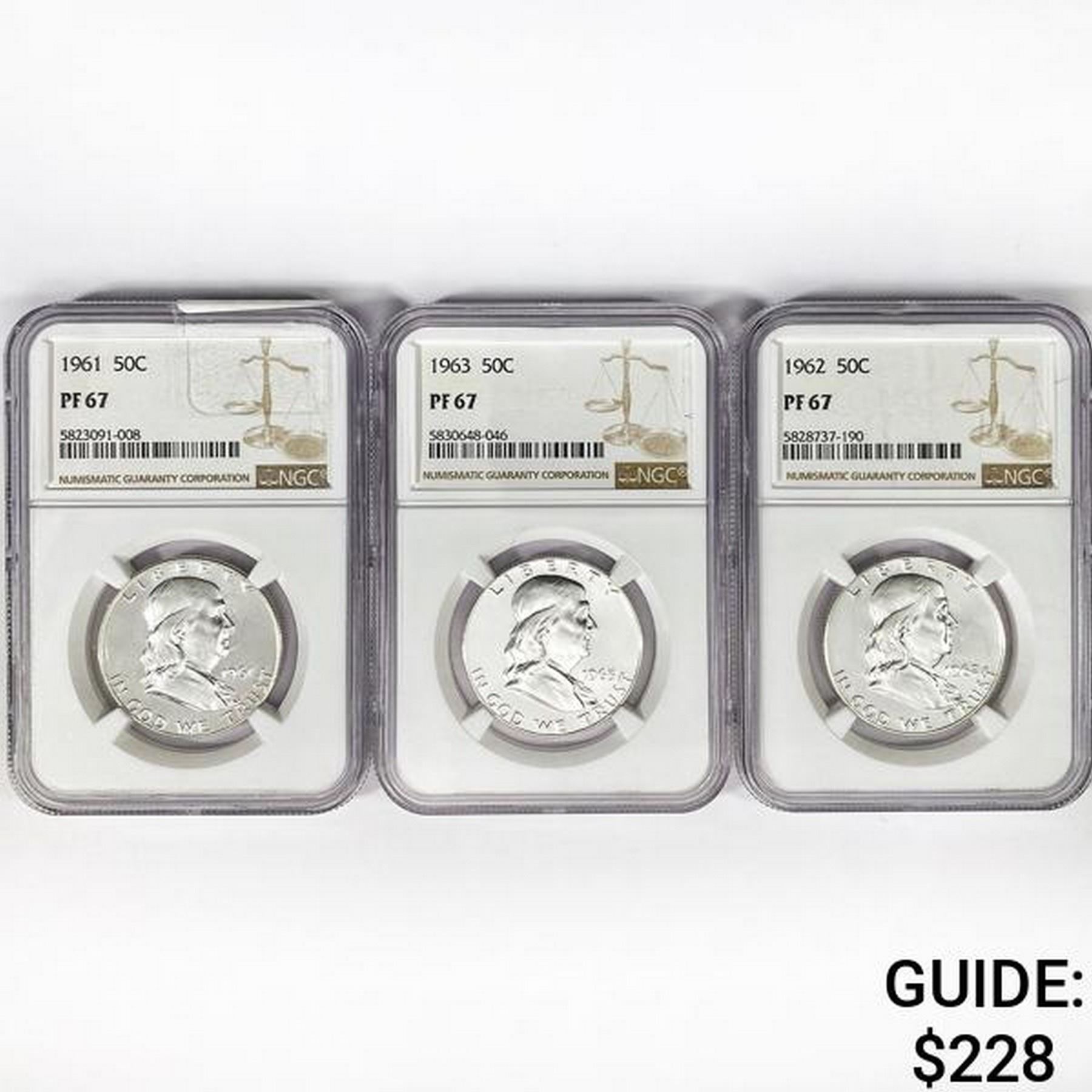(3) Franklin SILV Half Dollars NGC PF67 1961-1963