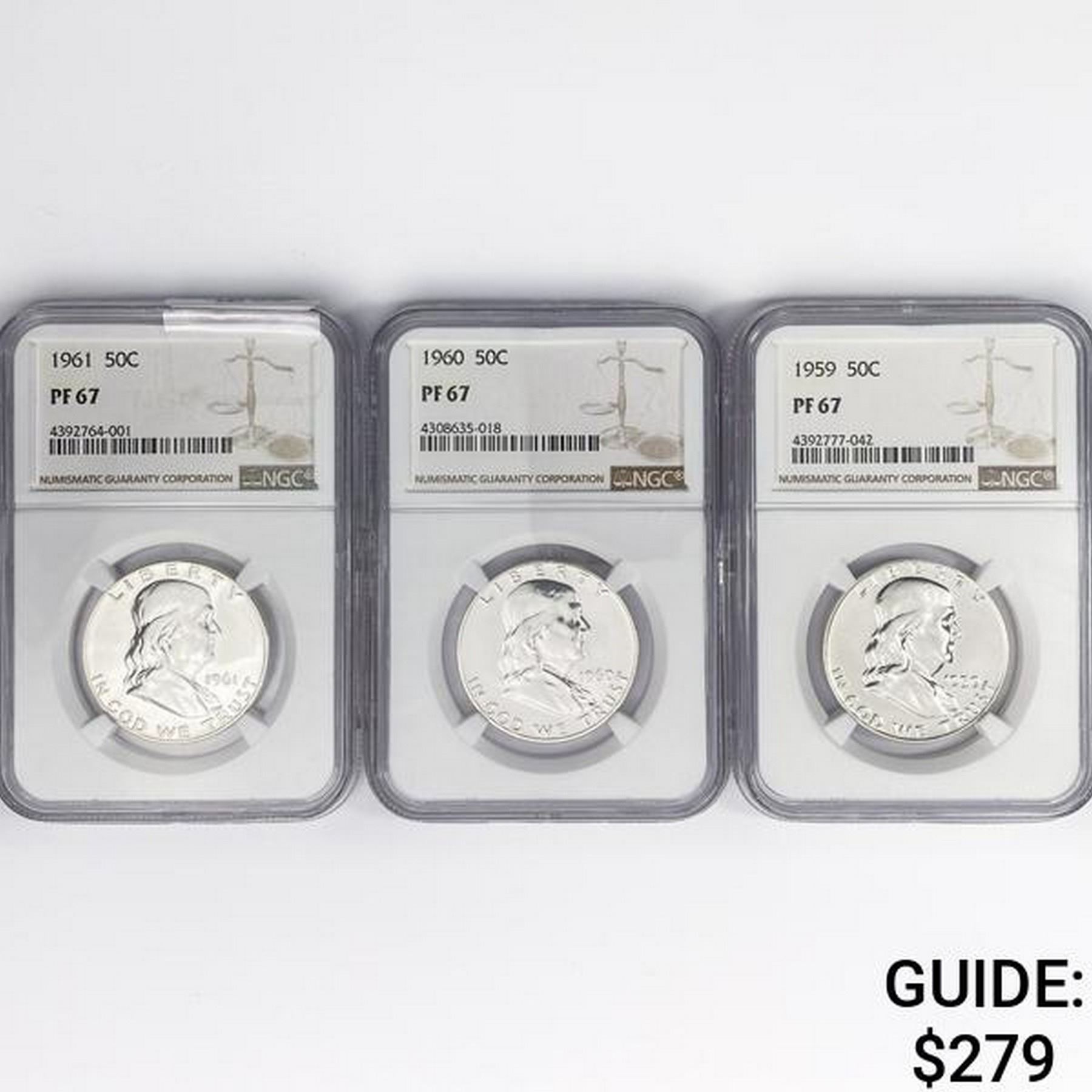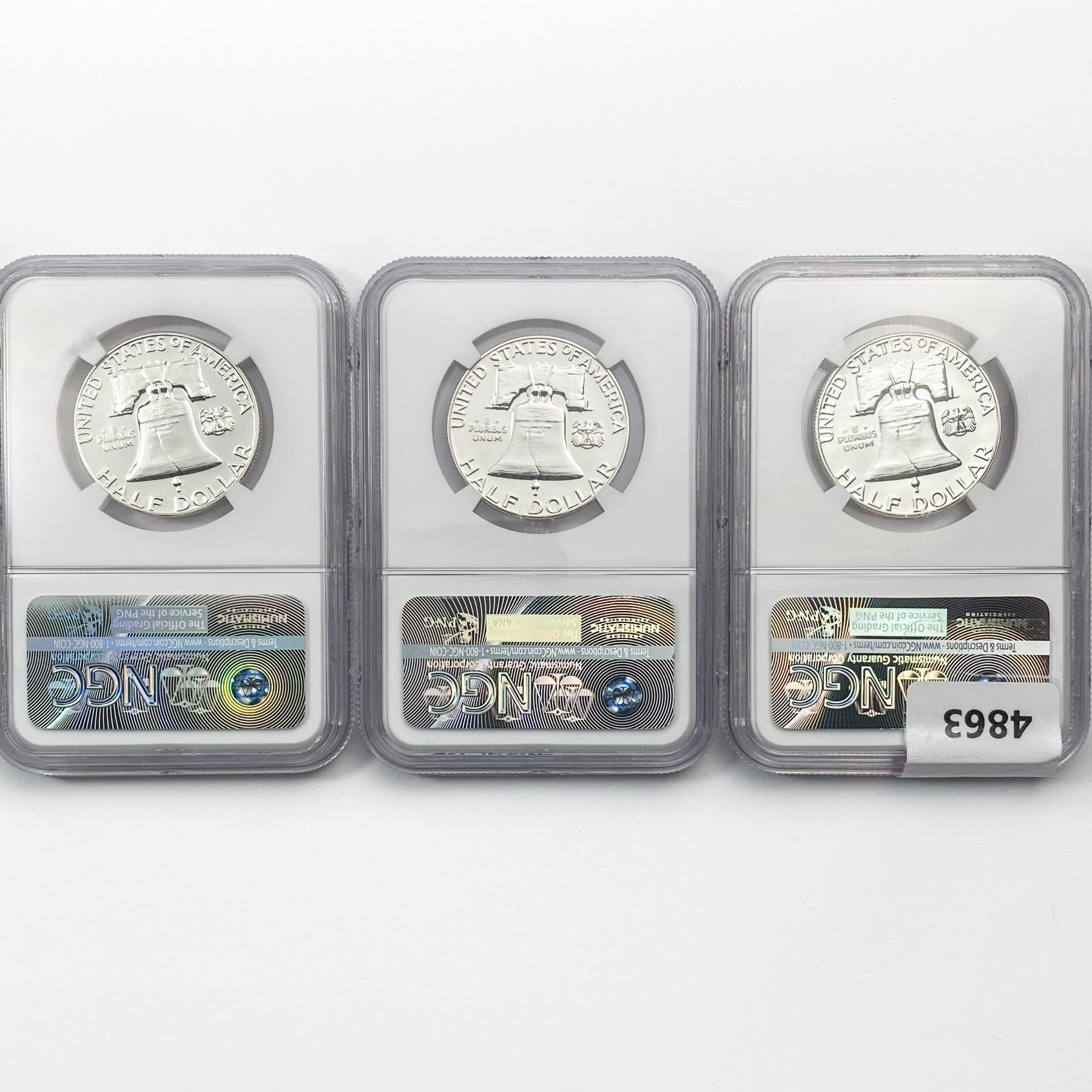 (3) Franklin Silver Half Dollar NGC PF67 1959-1961