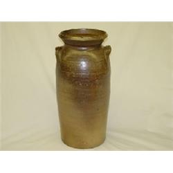 3 GAL. STONEWARE BUTTERCHURN W/ DASHER, UNDECORATED, CHIPS LIP & EARS