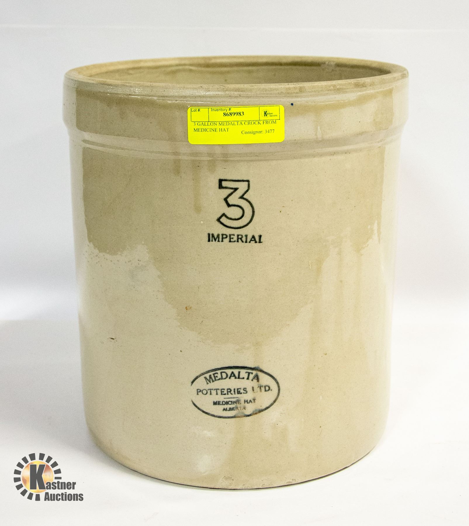 3 GALLON MEDALTA CROCK FROM MEDICINE HAT