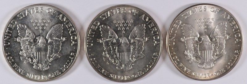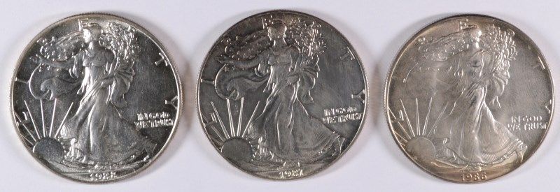 3-GEM BU AMERICAN SILVER EAGLES (1986,1987,1988)