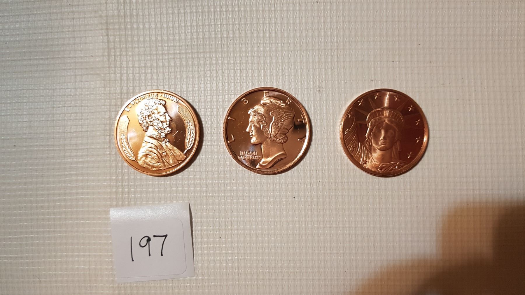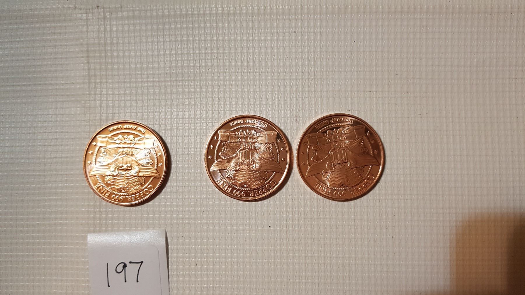 3 GIANT PURE COPPER 2012 AMERICAN COINS 10Z EACH