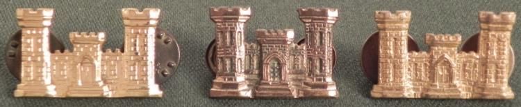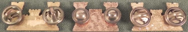 THREE GOLD WWII U.S. ARMY ENGINEERS INSIGNIA-CRIMP BACK-NICE DETAILONE MARKED 6W