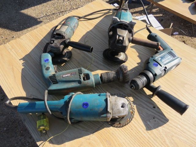 3 GRINDERS AND 2 DRILLS- MAKITA, BLACK AND DECKER