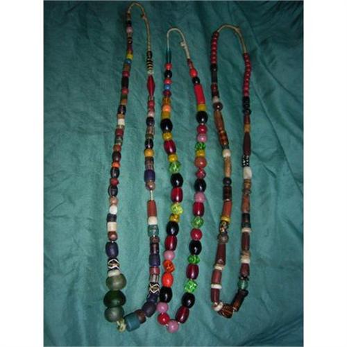 3 Gambian neclaces with old glass beads, with some agate ones.