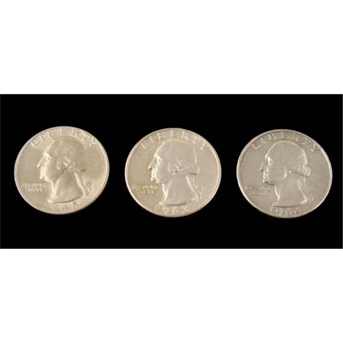 3 Different Date Washington Quarters * Dates: 1945, 1963-D, 1964-DCondition: Gem Uncirculated