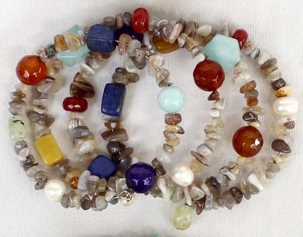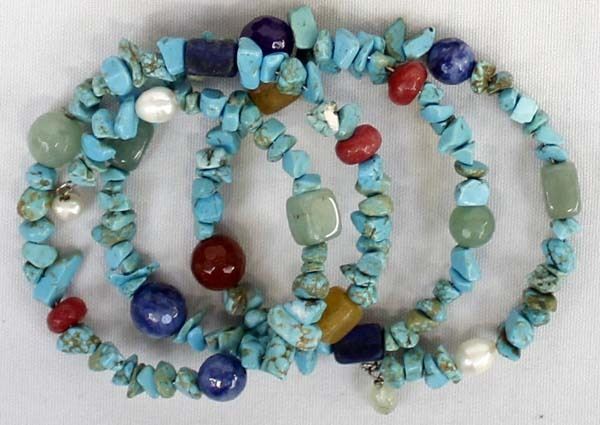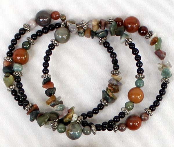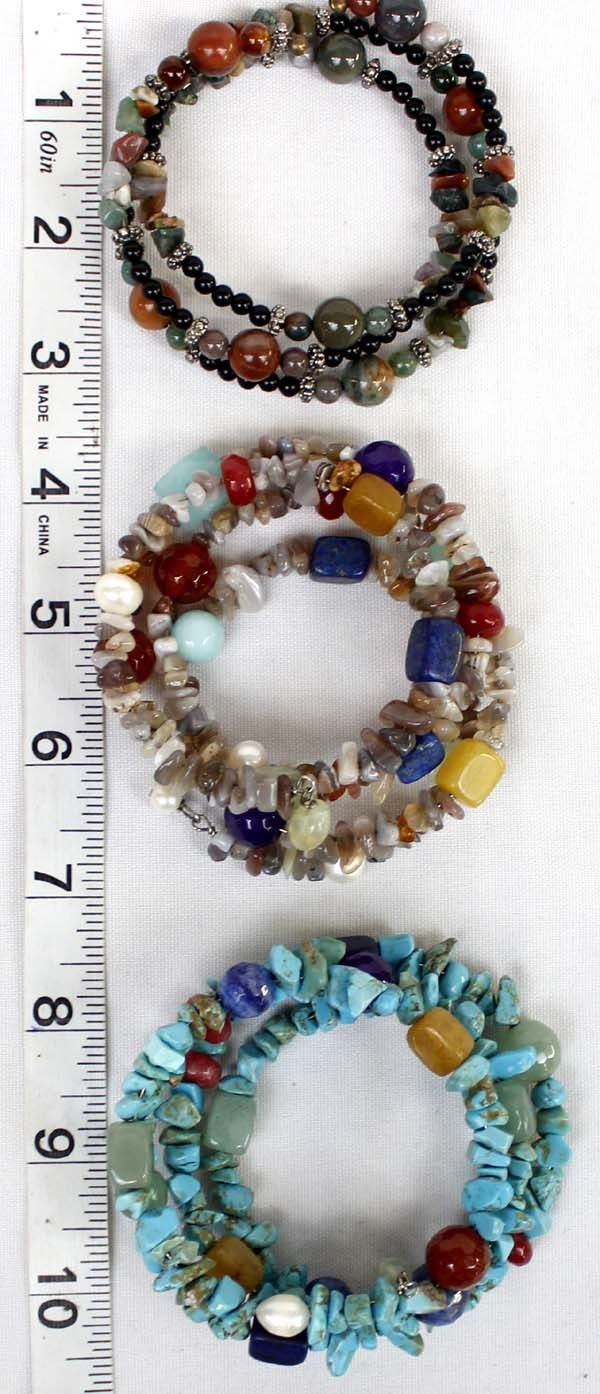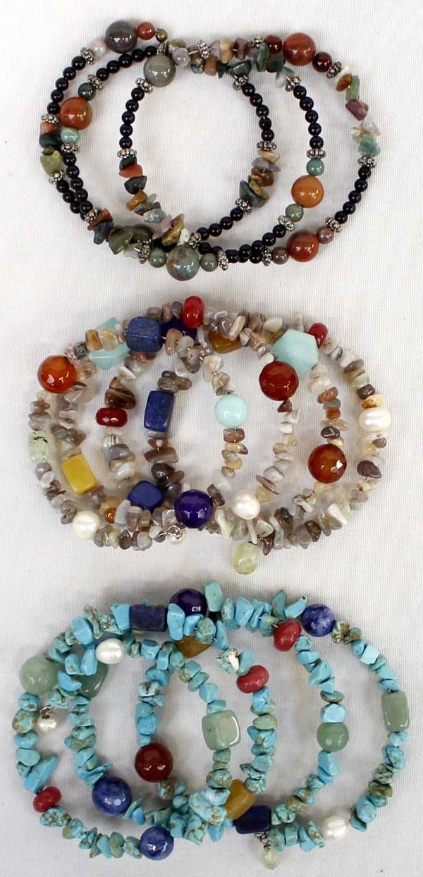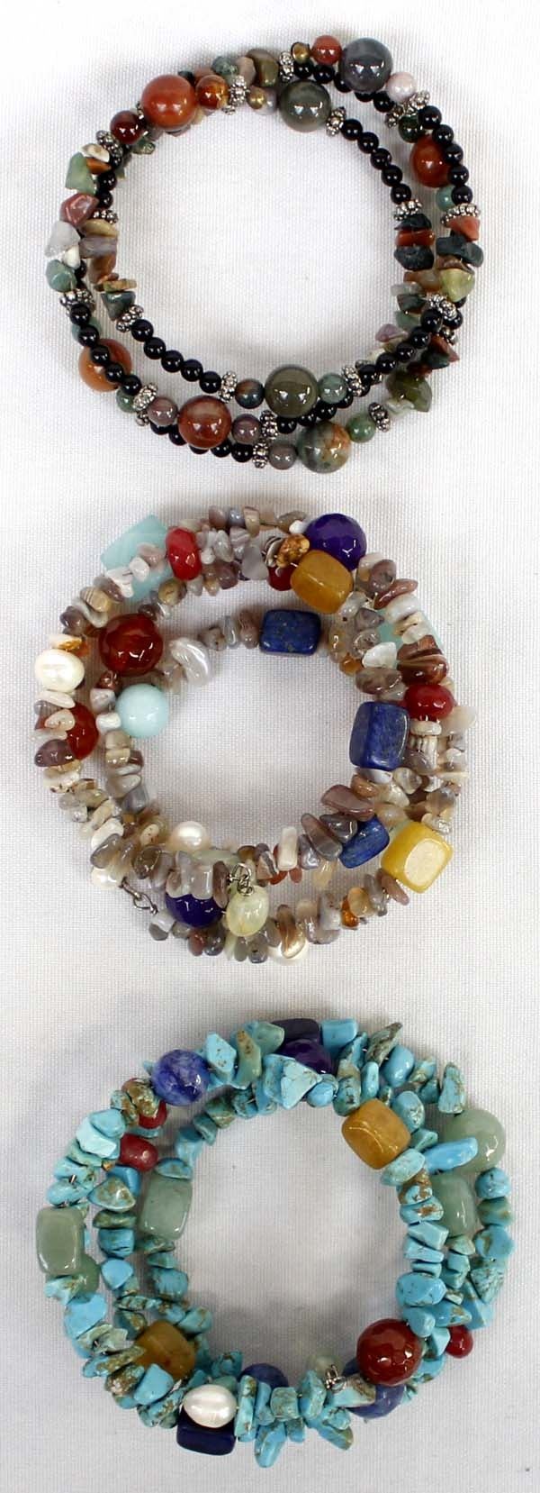 3 Gemstone Wrap Around Bracelets, adjustable sizes, includes turquoise, lapis, quartz, carnelian, onyx, jade, plus, lots of beautiful colors