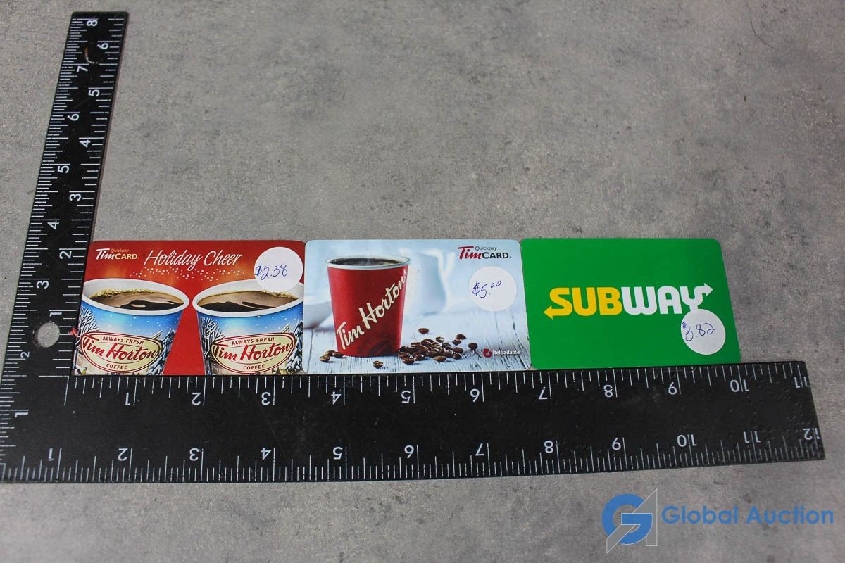Subway - $3.82, (2) Tim Hortons - $7.38
