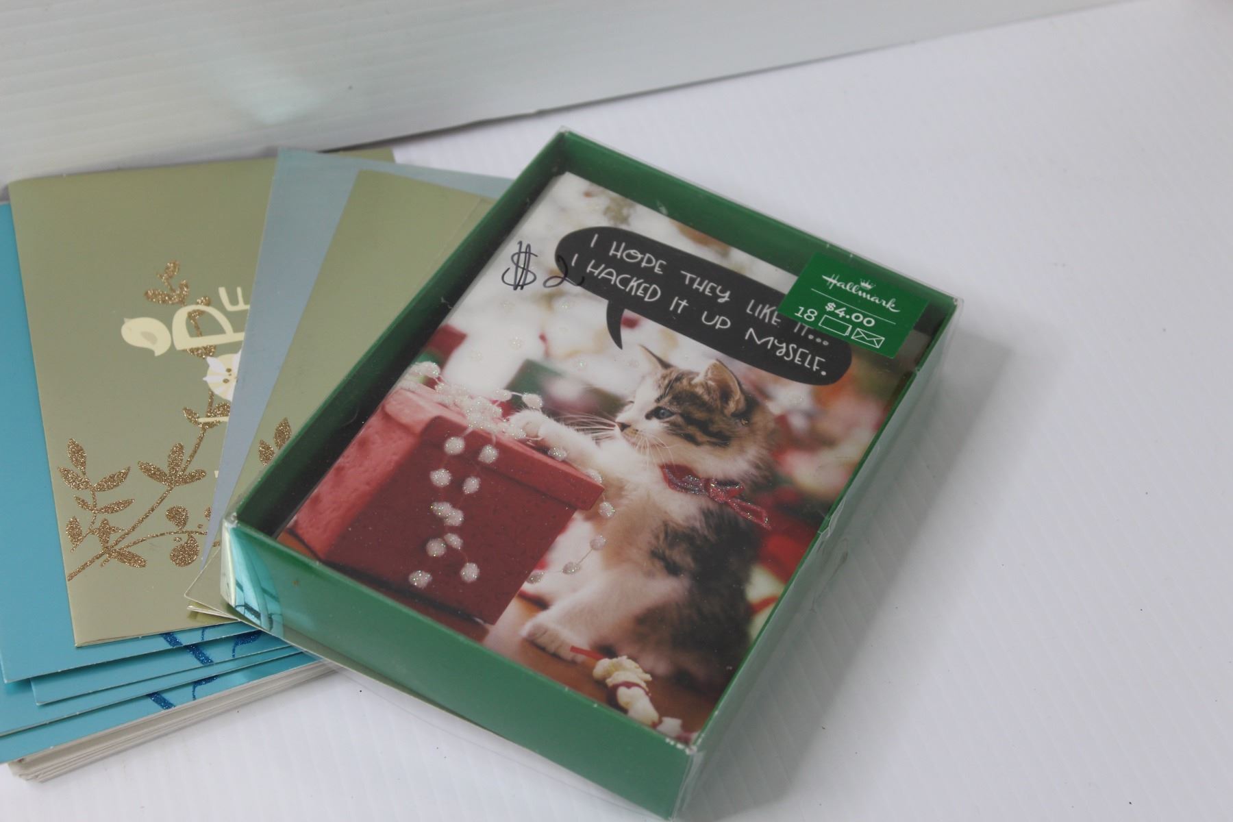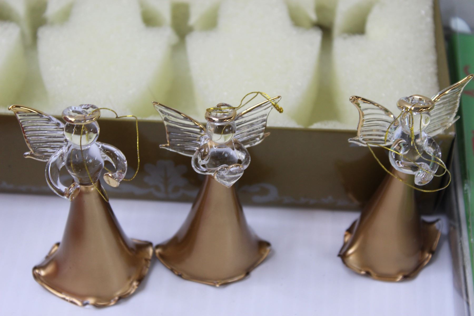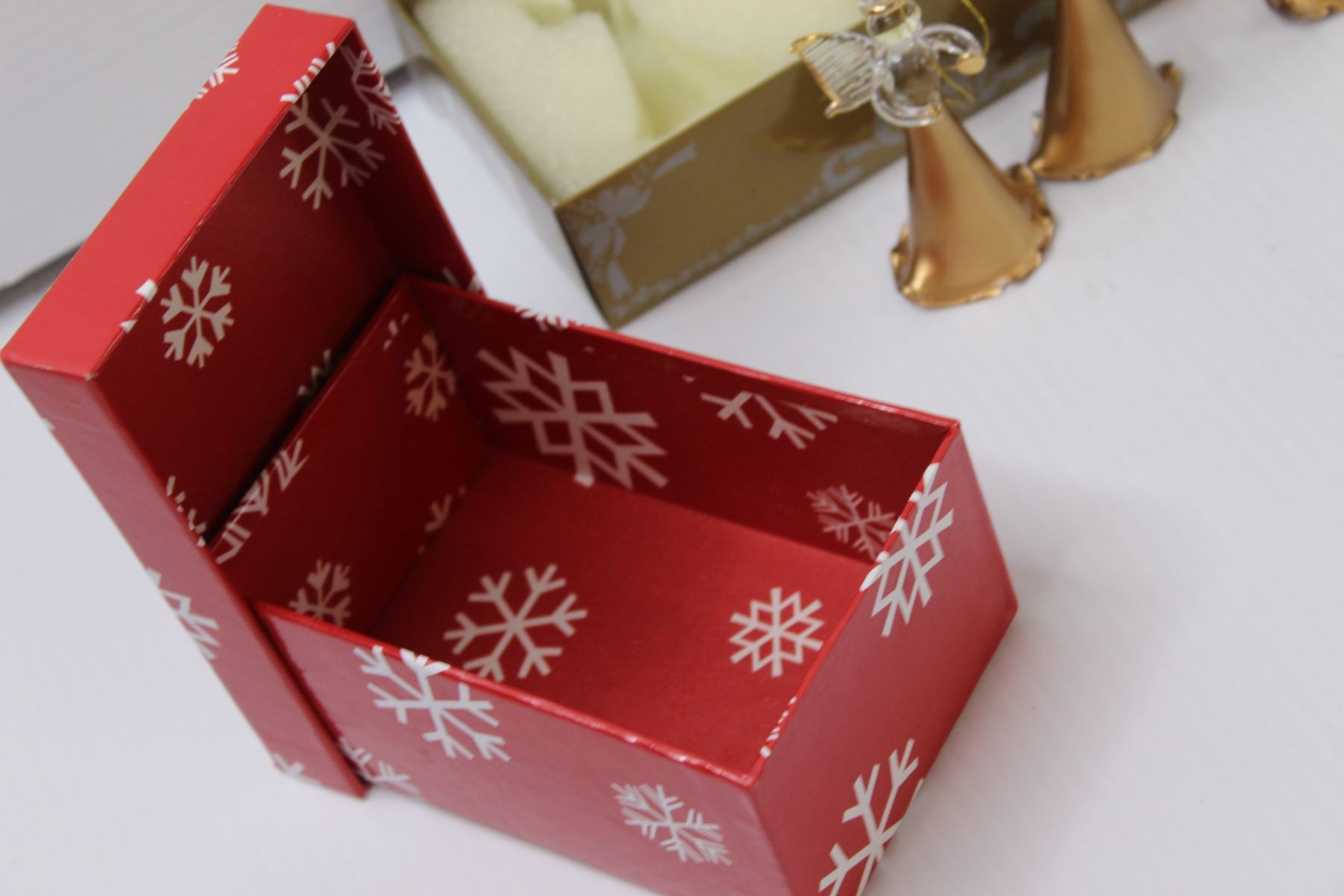 (3) Glass Angel Ornaments, Assorted Christmas Cards, Snowflake Gift Box