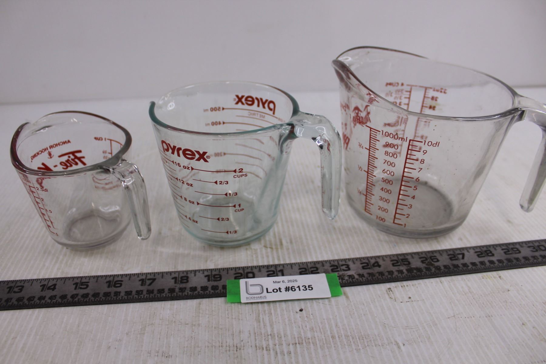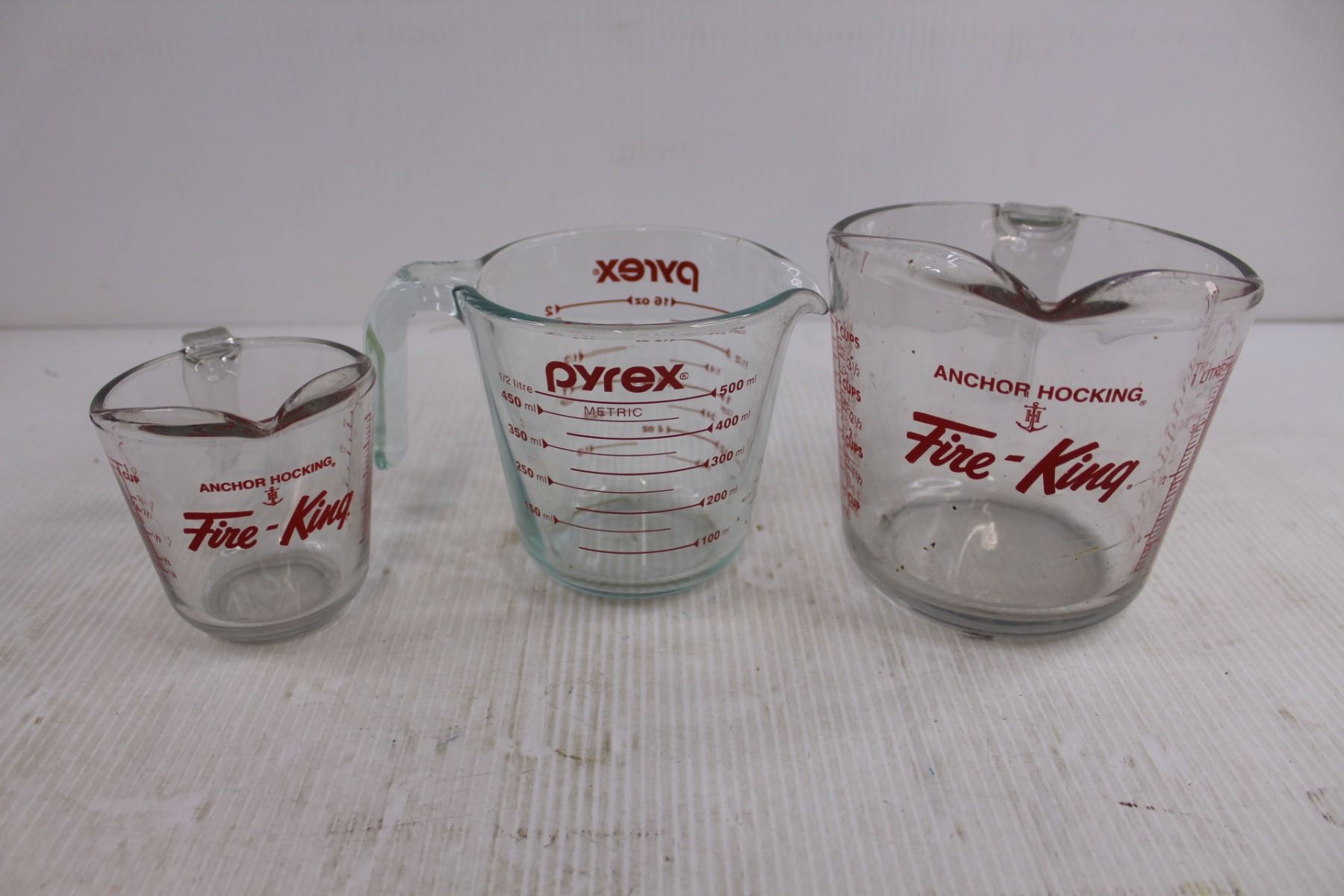 (3) Glass Measuring Cups (2 Fire King & 1 Pyrex)