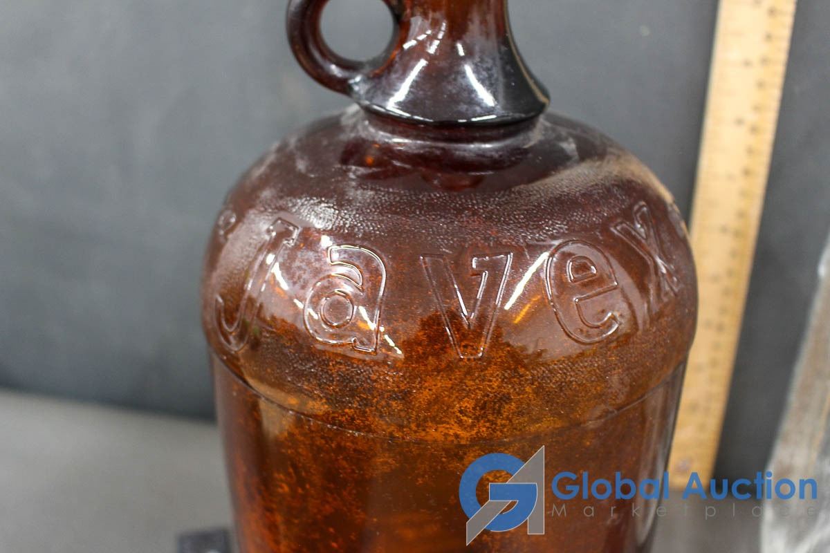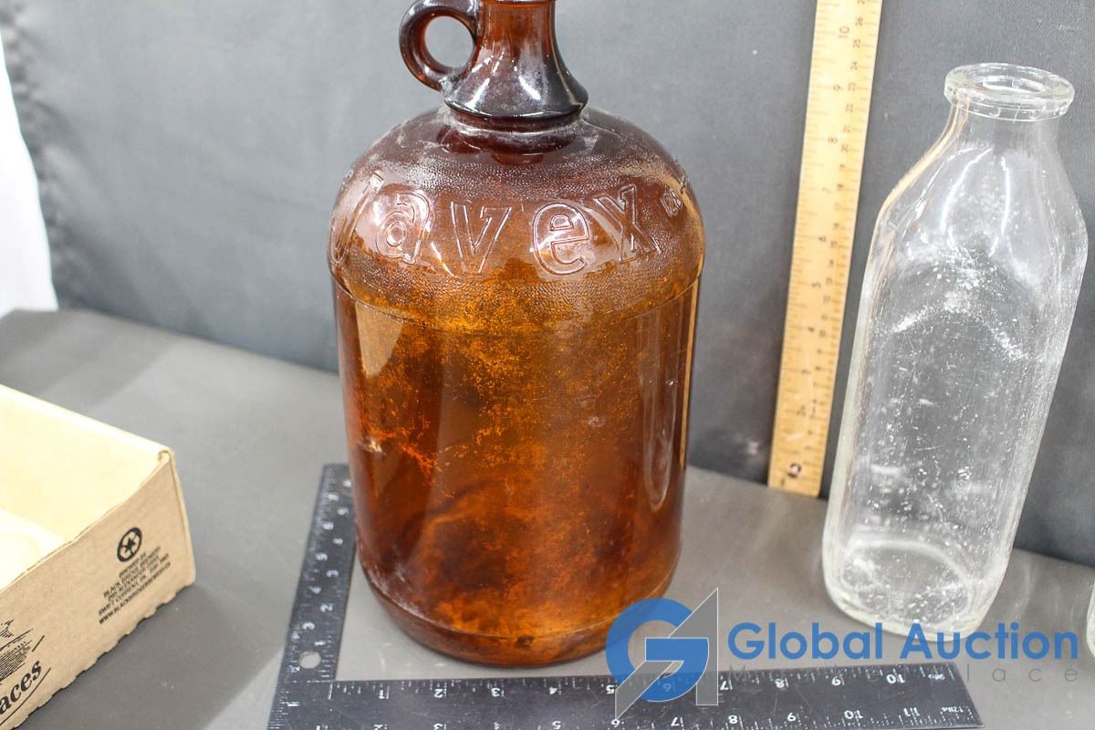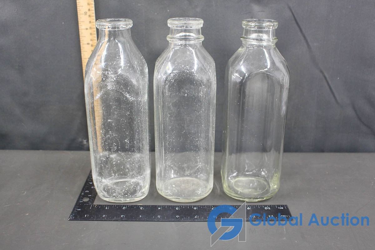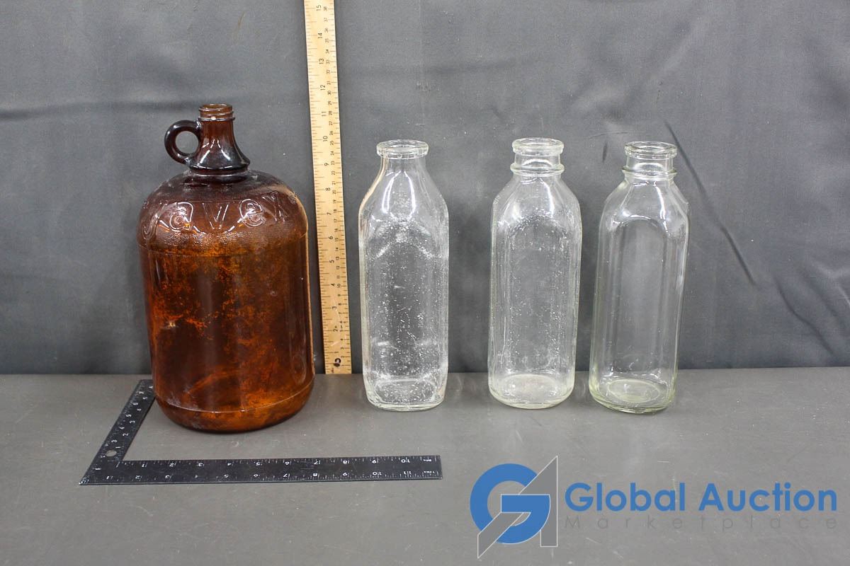 (3) Glass Milk Bottles & Javex Jug