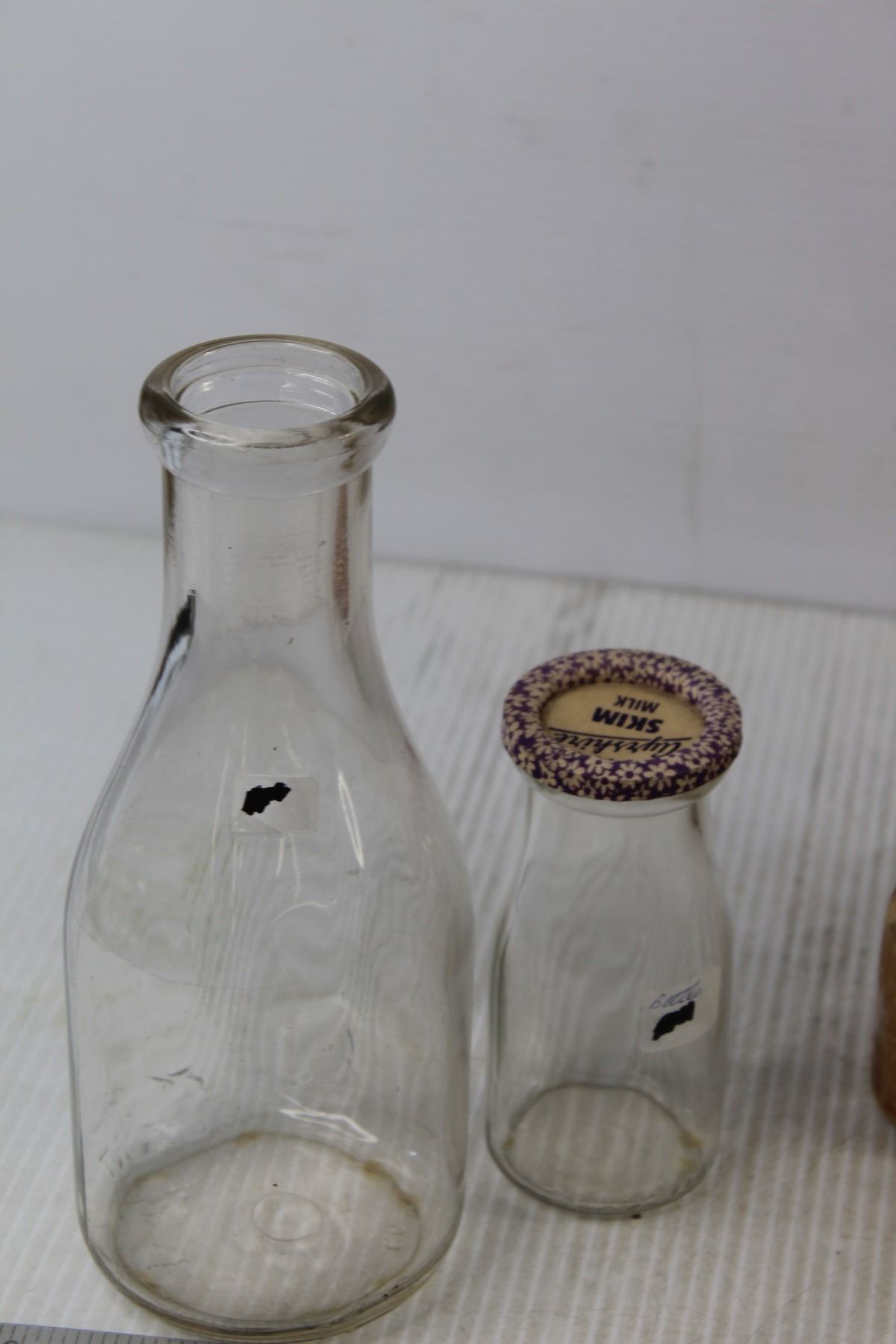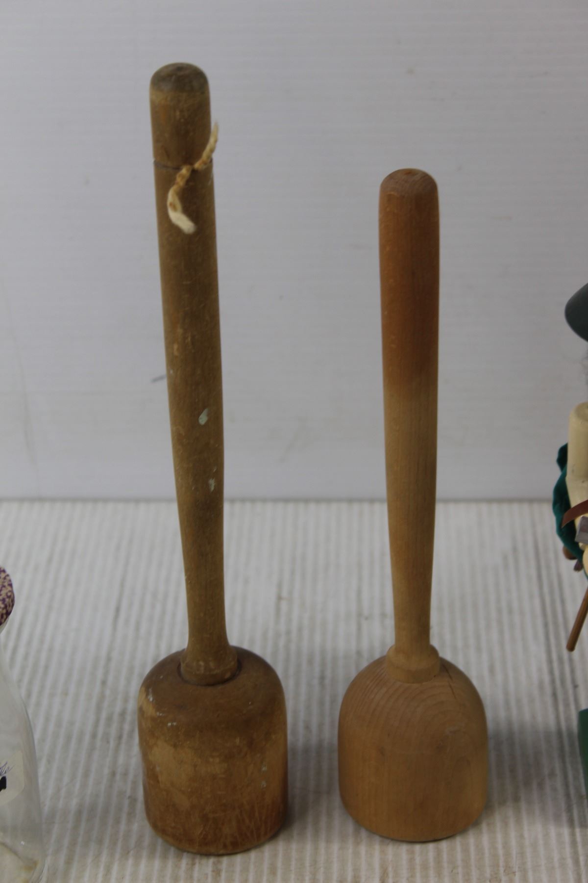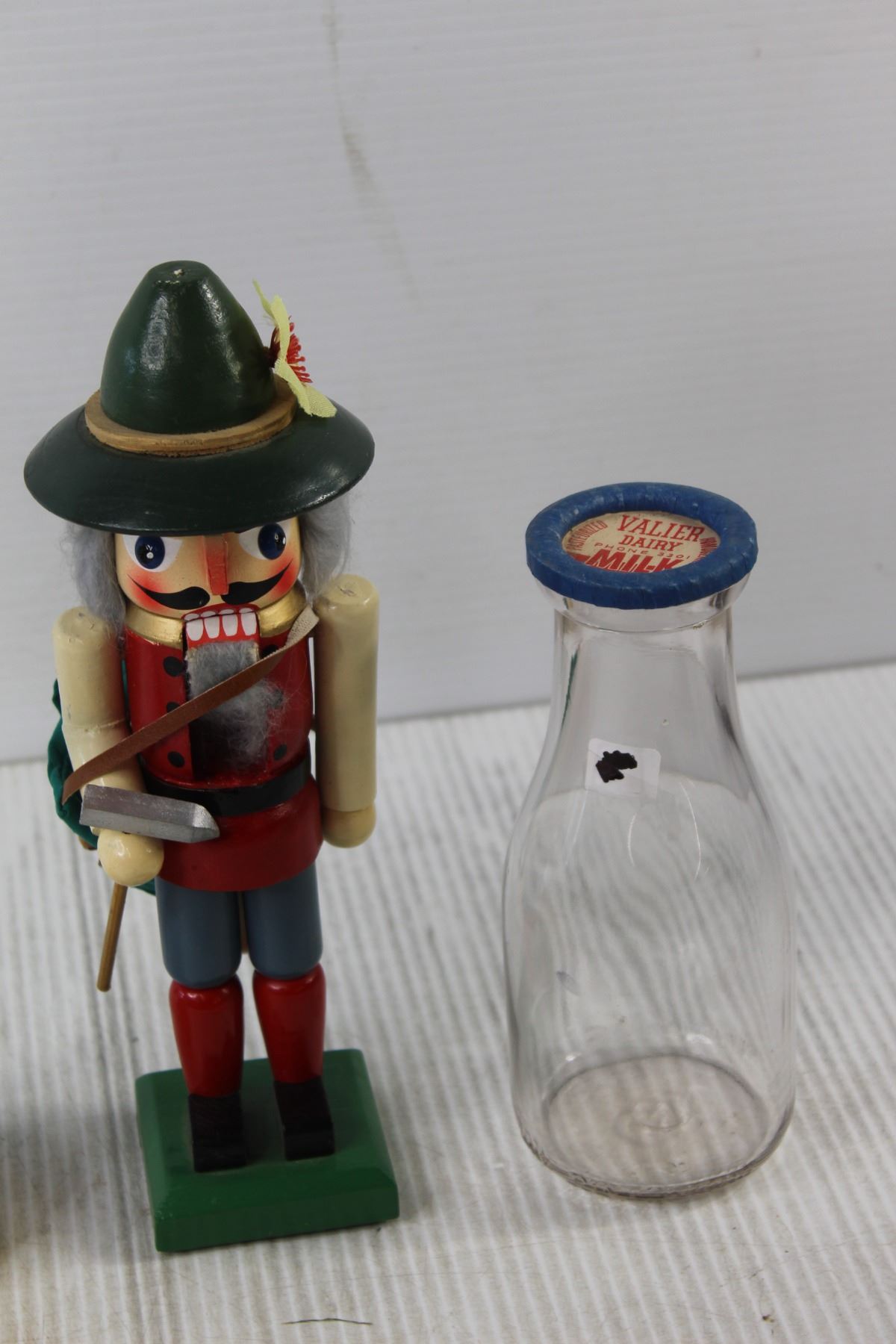 (3) Glass Milk Bottles, Nutcracker, (2) Wooden Kitchen Mashers