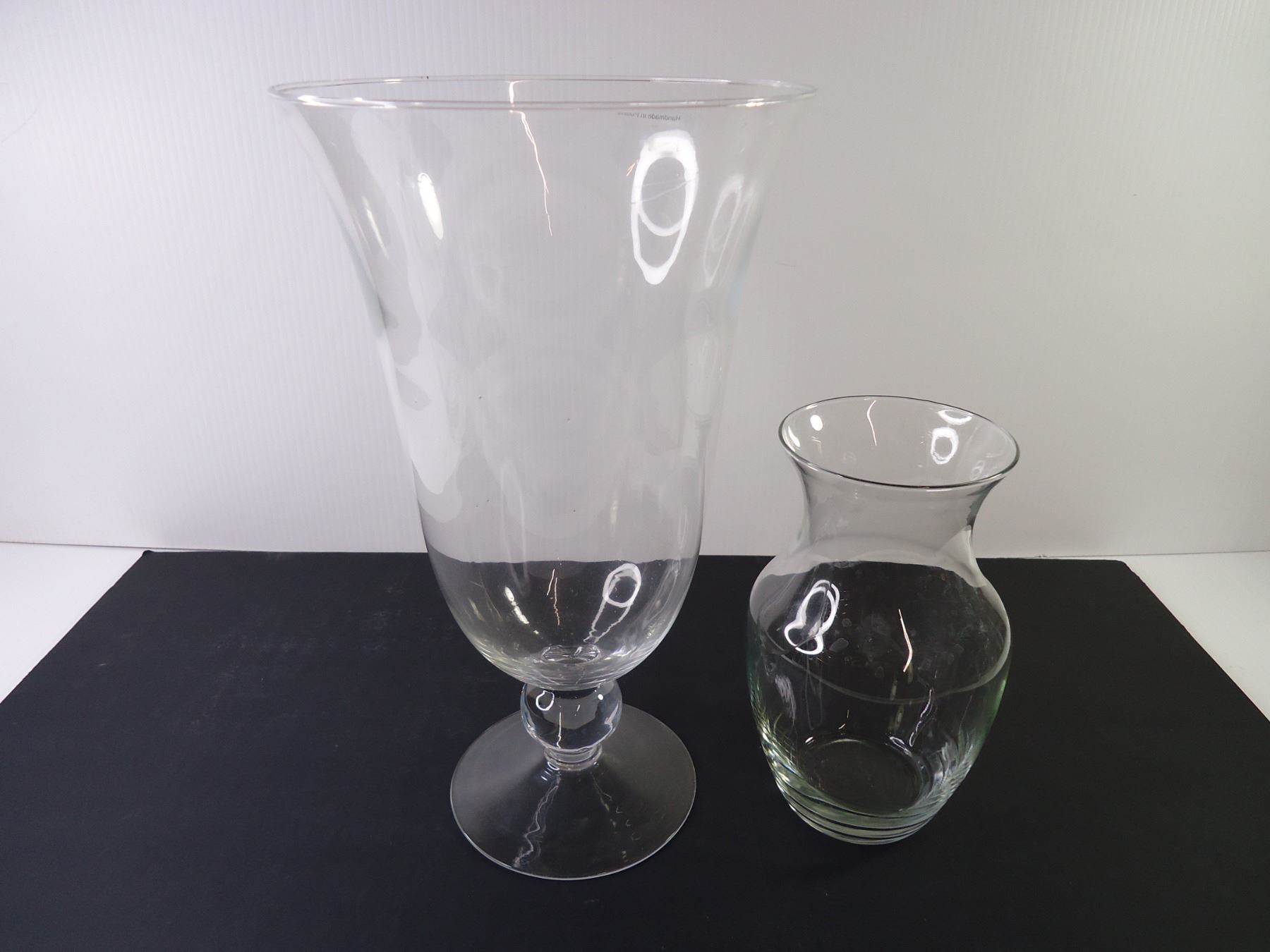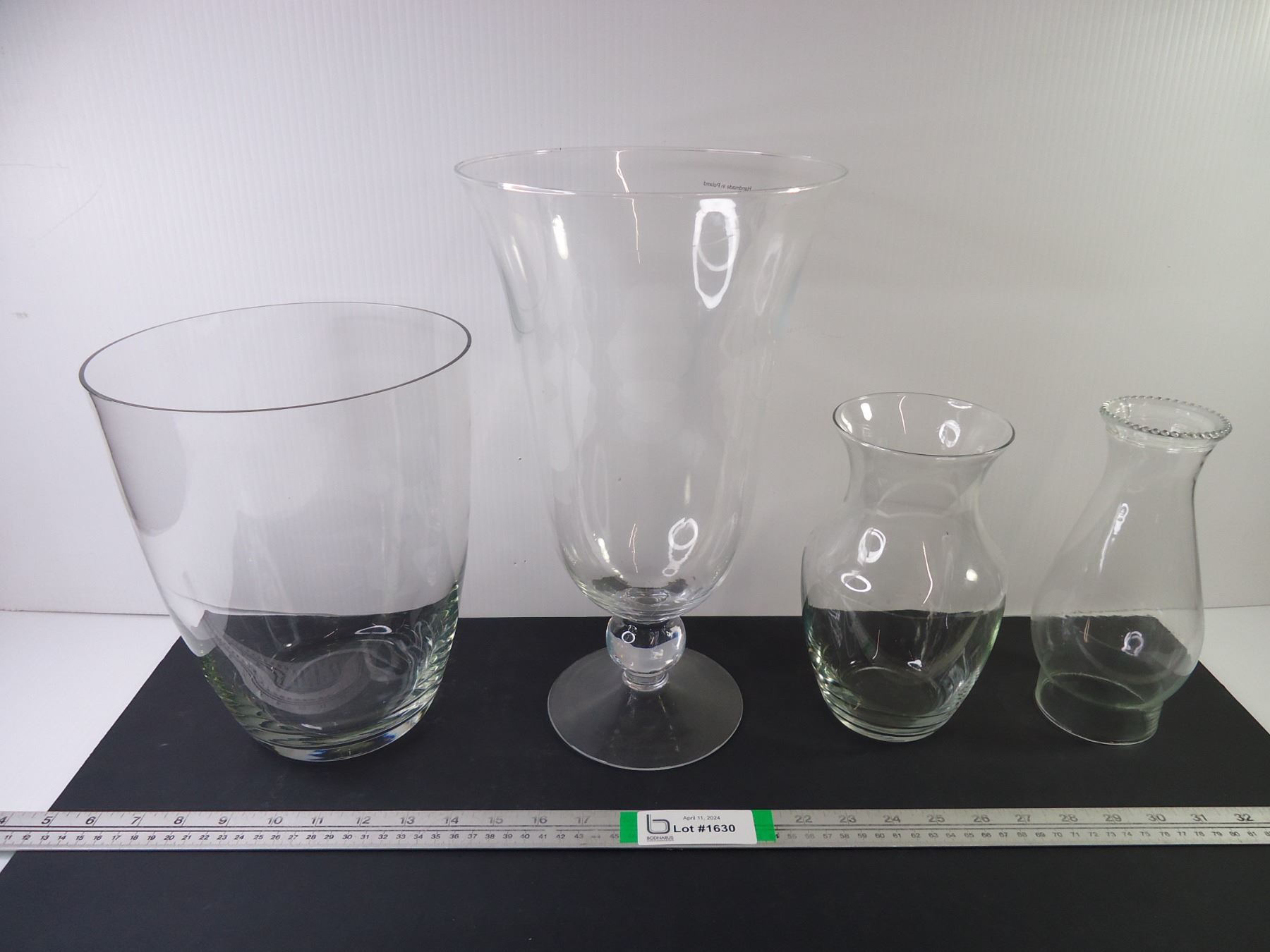 (3) Glass Vases and (1) Oil Lantern Chimney