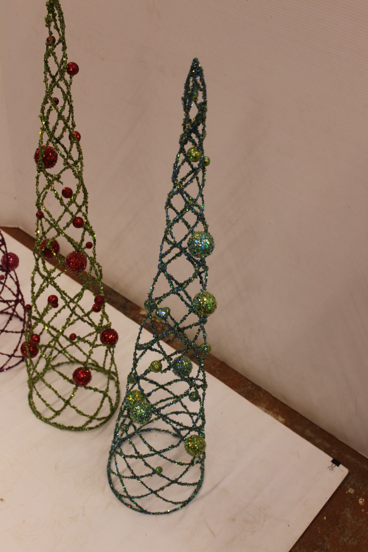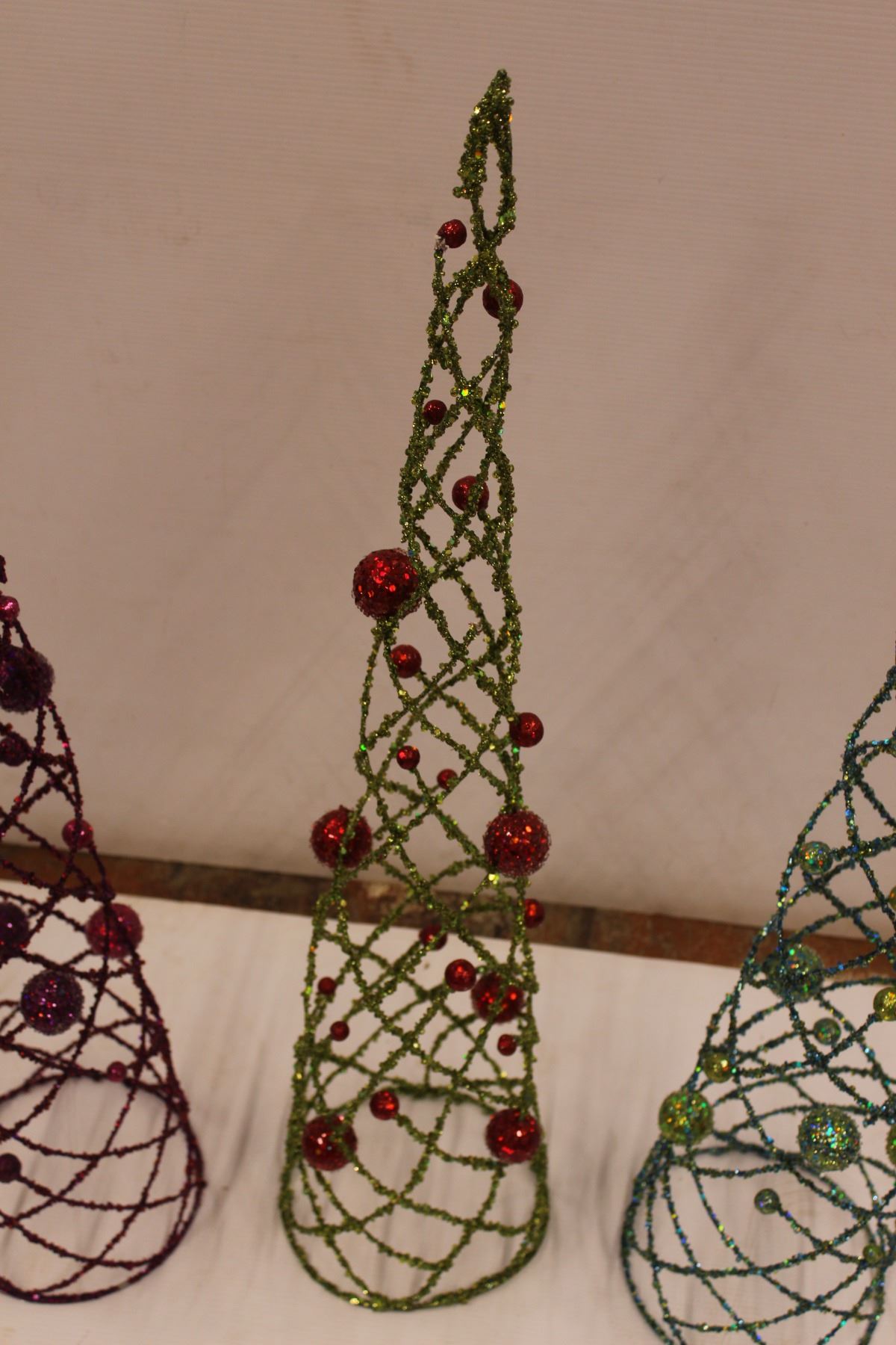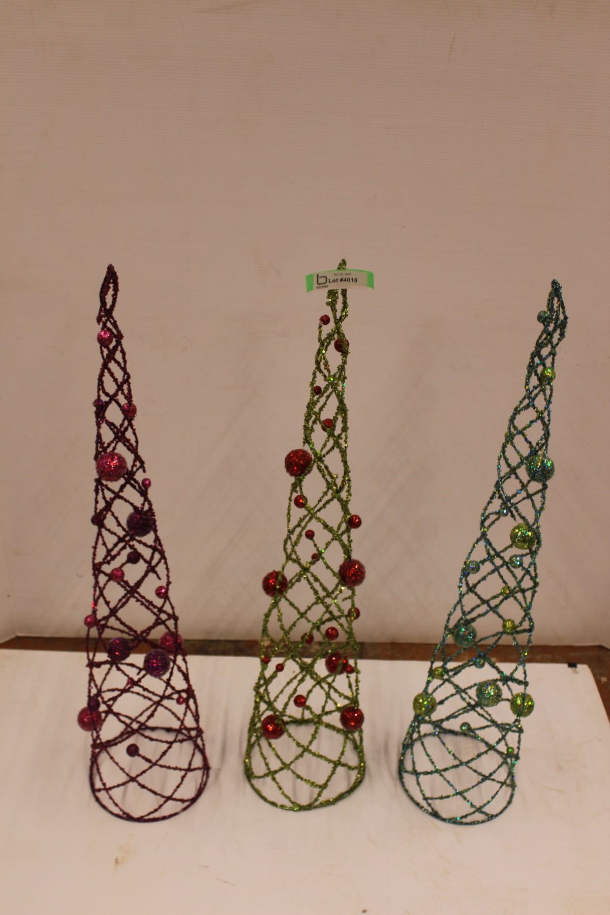* (3) Glittery Christmas Tree Decorations - 39" Tall