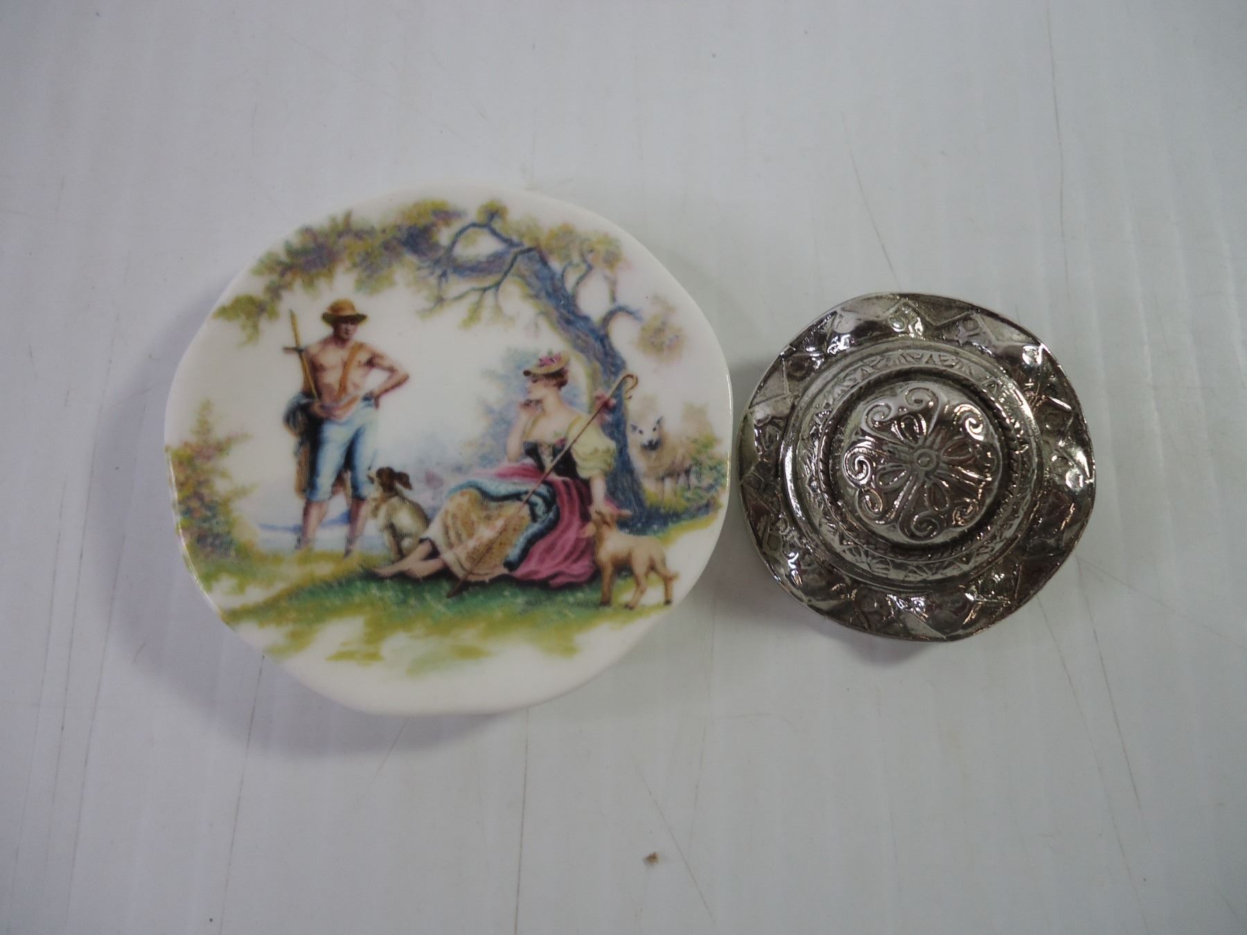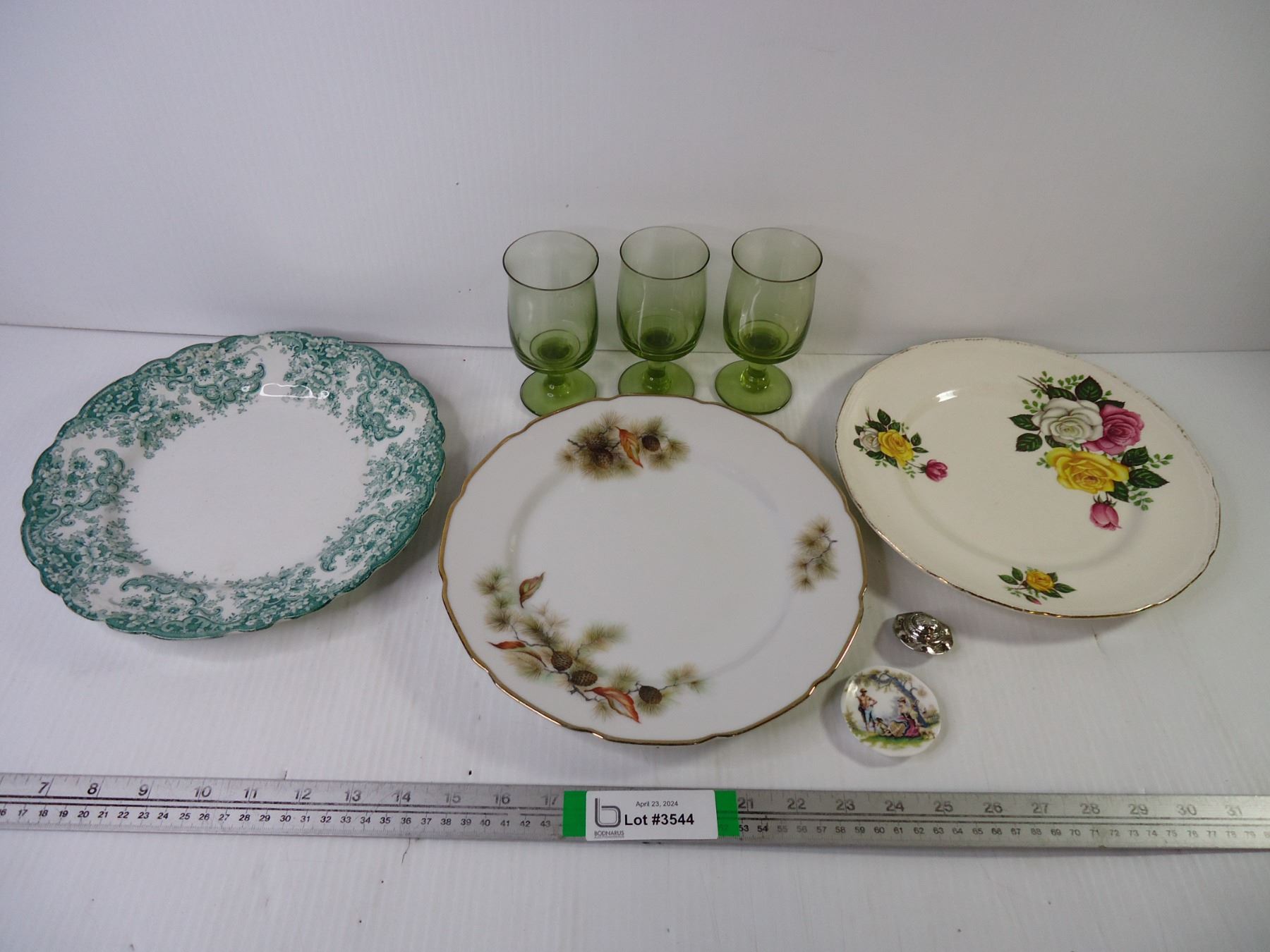 (3) Goblets,(3) Assorted Plates, Miniature Plate, Brooch