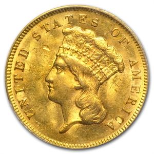$3 Gold Princess - MS-62 NGC or PCGS **|**|** Year: 1854-1889 ; Mint Mark: MS-62 ; Grade: Varies ; Denomination: 3 ; MSRP: $4900