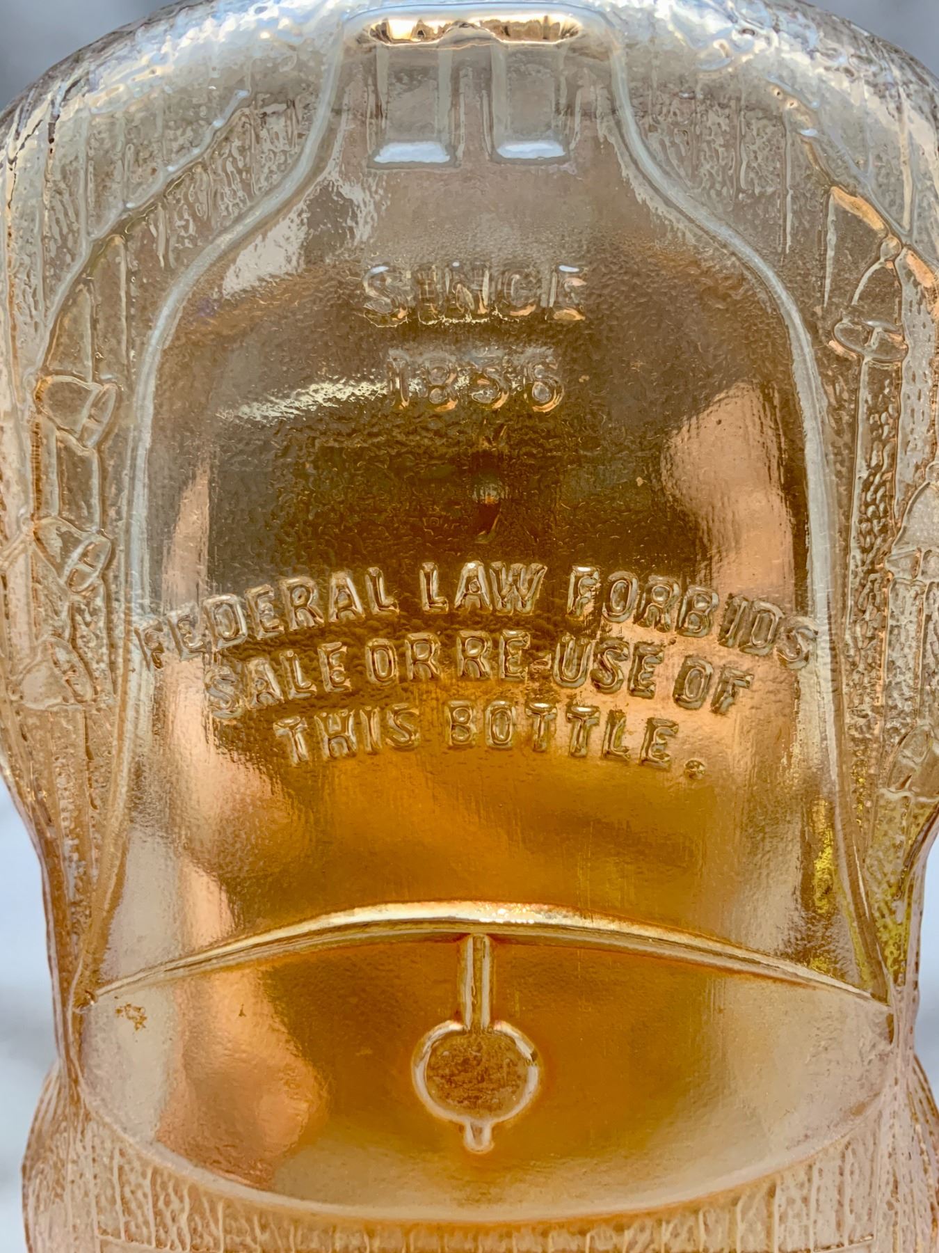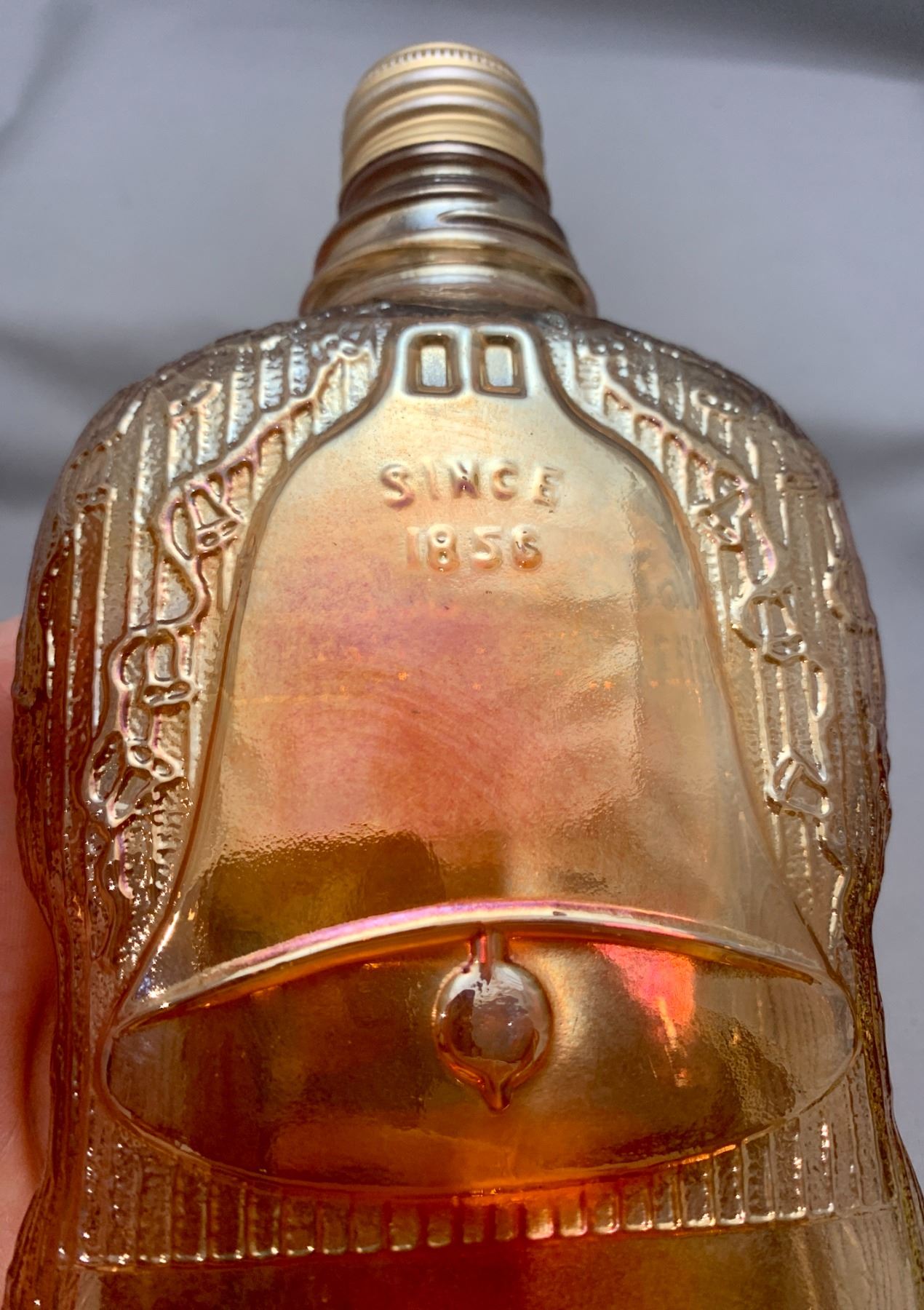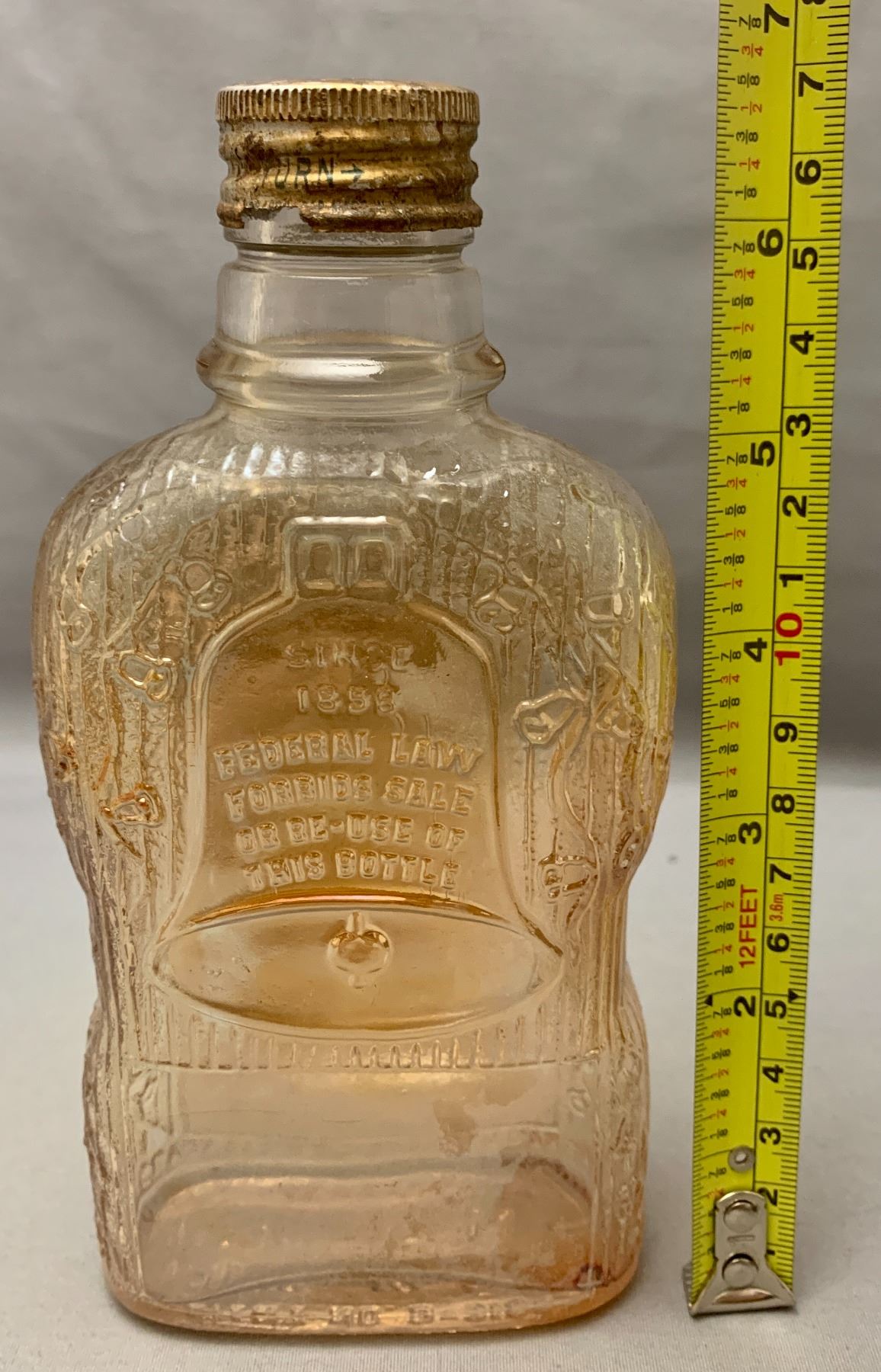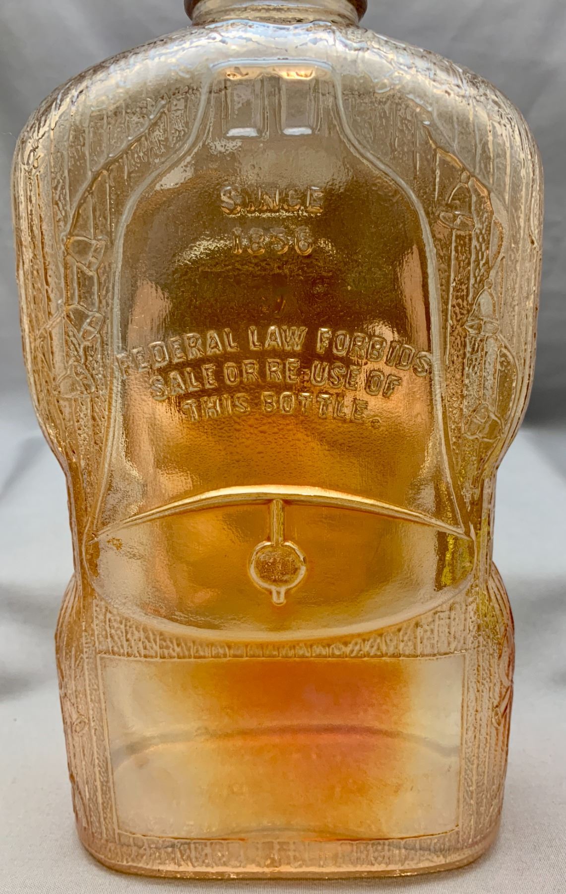 (3) "Golden Wedding" Carnival Glass Whiskey Bottles: 1 QT; 1 Pint; 1/2 Pint. RARE! Circa 1930's