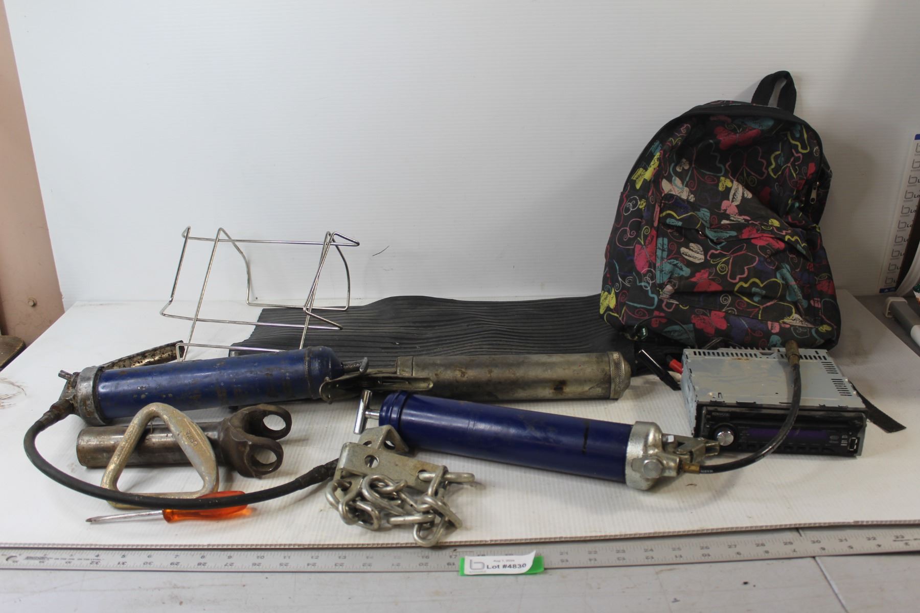 (3) Grease Lever - (2) are Lincoln, Kids Backpack, Car Stereo, Assorted Automotive Hardware