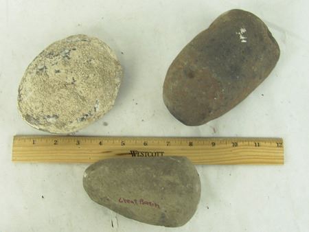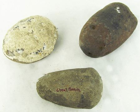 Prehistoric, Collection of three nice Columbia Basin stones marked "Oregon Desert," "Great Basin," and "Loring Collection." All in good condition. *Heavy item: Item may incur additional shipping costs due to size/weight* 5-1/2" & 5" & 5"
