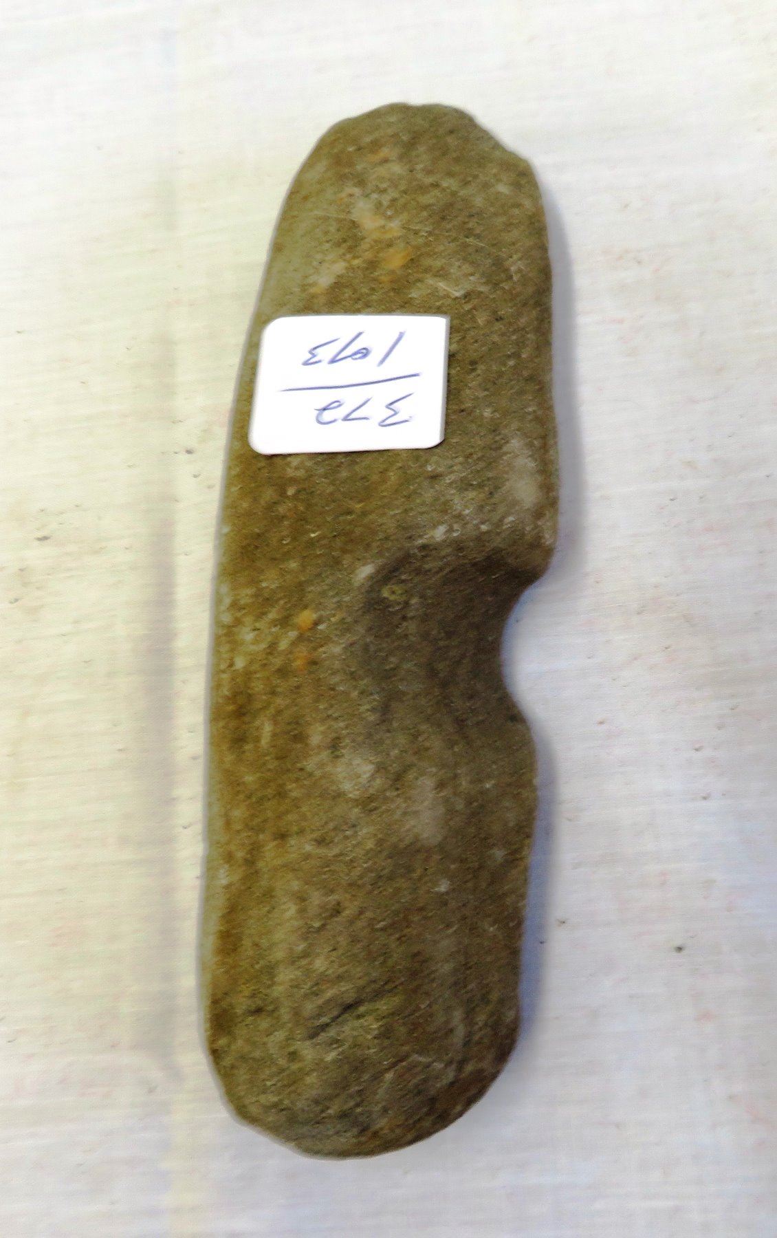 3 Grooved Chumash Stones, pre-historic items. Made of granite, the longest measures 8". Santa Barbara County, California. Condition: As found, see images. Shipping: $28.50 w/insurance and signature, due to size and weight.