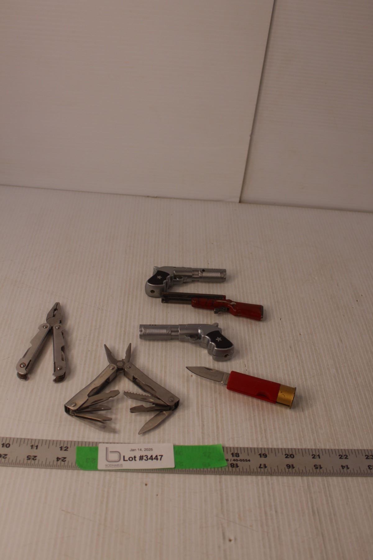 (3) Gun Lighters, (2) Mini Multitools & Knife