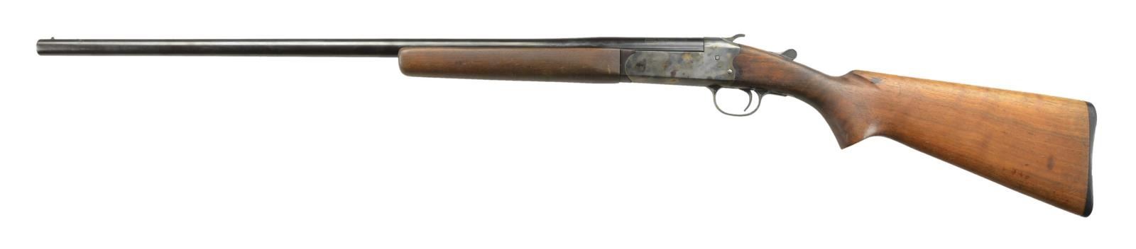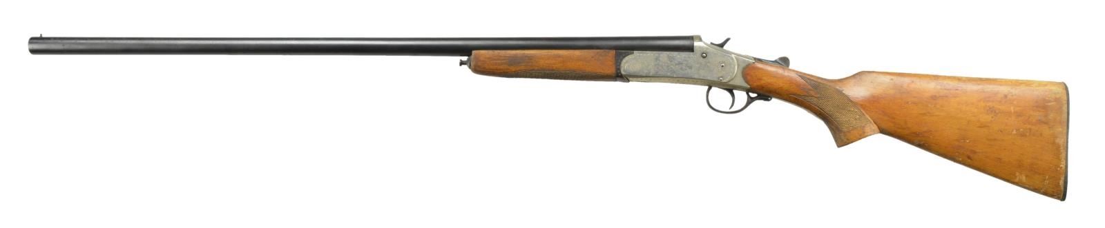 3) LIBERTY ARMS. Cal. 12 Ga., 2 3/4". S# 56824. Mfg. in Spain. Blued 30" bbl. w/ brass bead & Mod choke. Bright receiver w/ floral & scroll ornamentation. Hardwood stock set. CONDITION: Good blue. Fair bright receiver. Fair stock finish w/ lg. cracks. Stiff operation, ejector not timed properly. Pitted bore. PROVENANCE: Estate Collection of Jack Verret Sr. (22-838/MD). MODERN. $100-200.