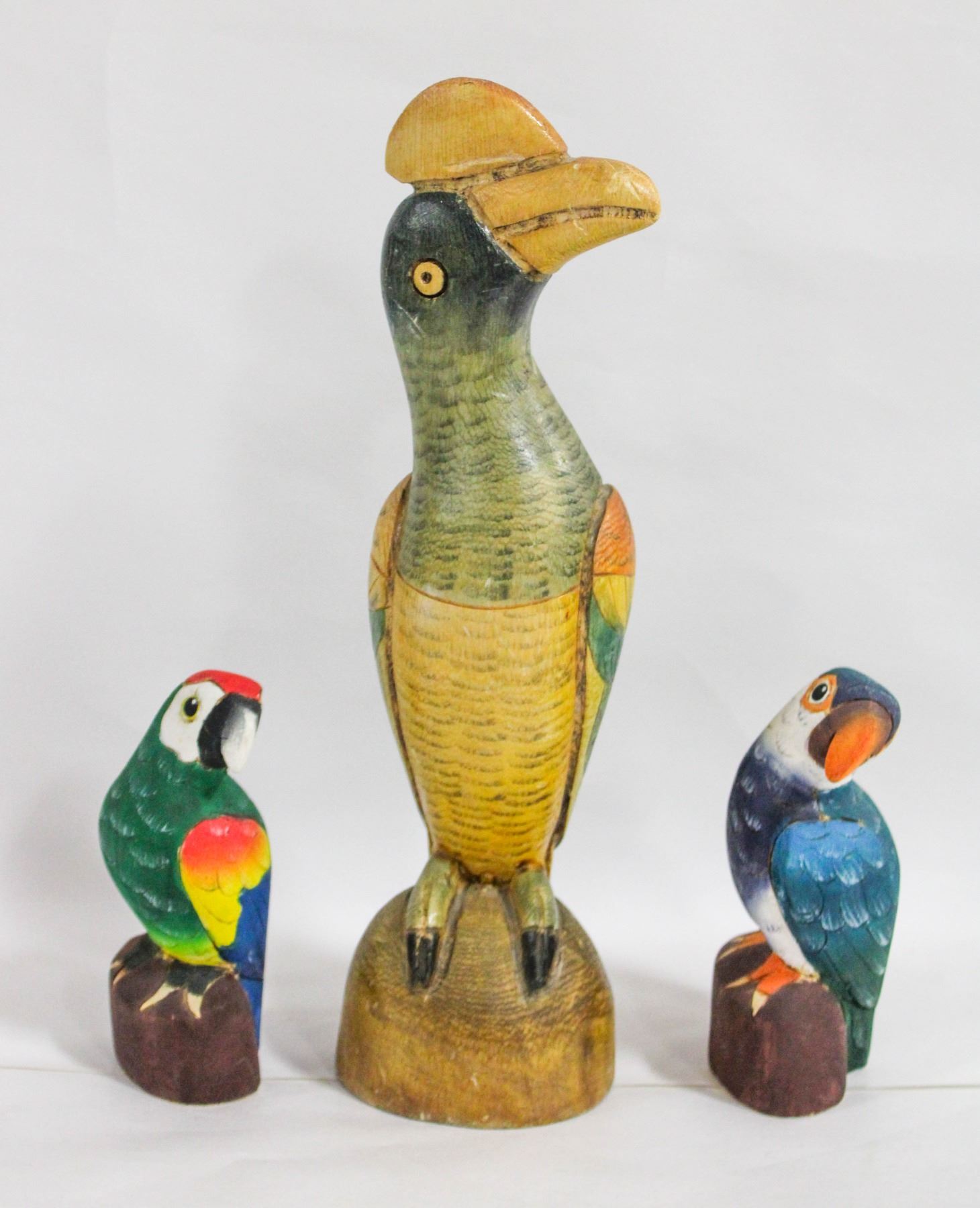 3 HAND CARVED WOODEN BIRDS HAND PAINTED