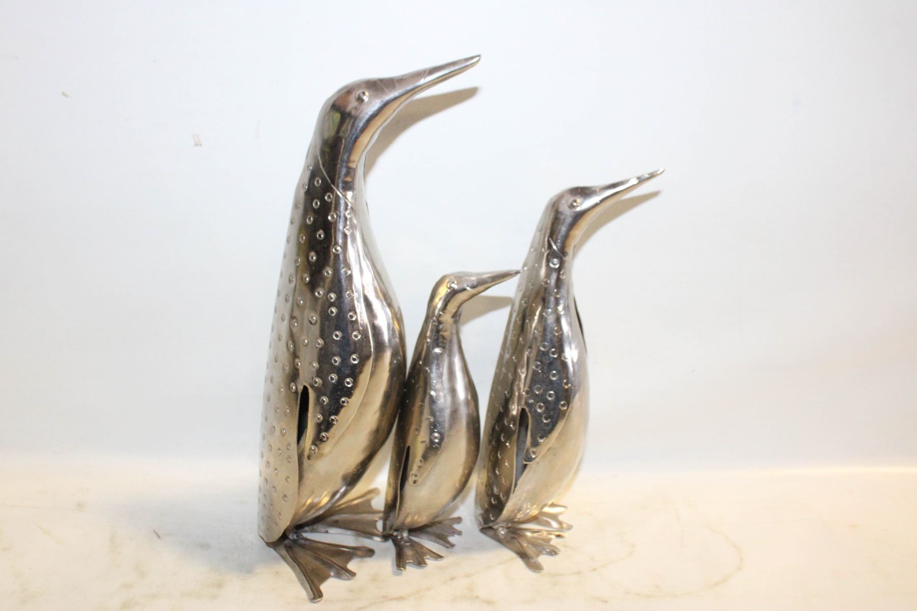 3 HANDCRAFTED METAL PENGUINS,