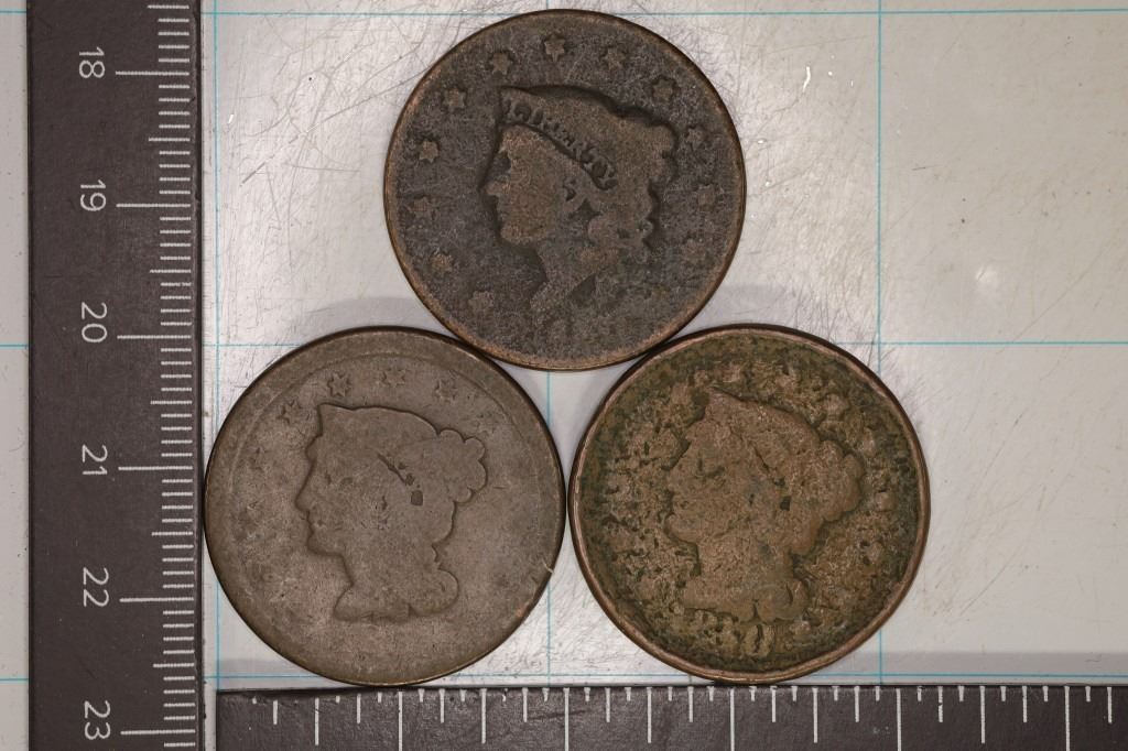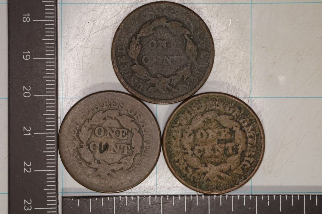 3-HARD TO READ DATE US LARGE CENTS: 1851, ?, ?
