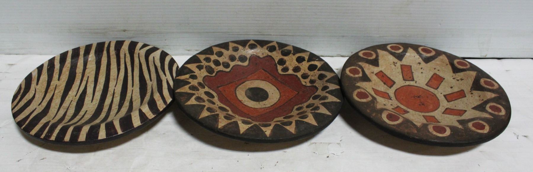 3 HEAVY DECORATIVE CLAY PLATES