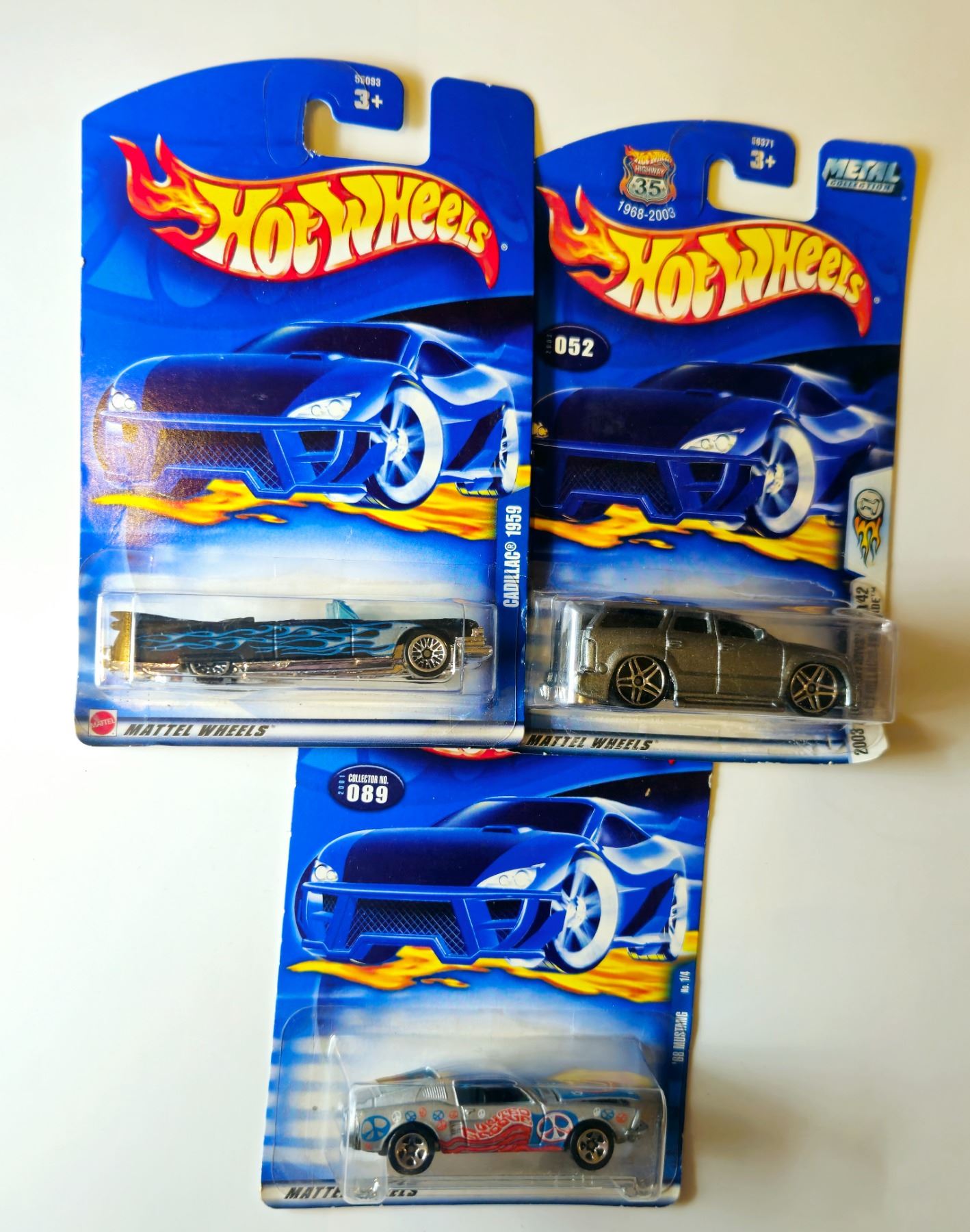 3 HOT WHEELS 2002 RELEAES 68 MUSTANG, 1959