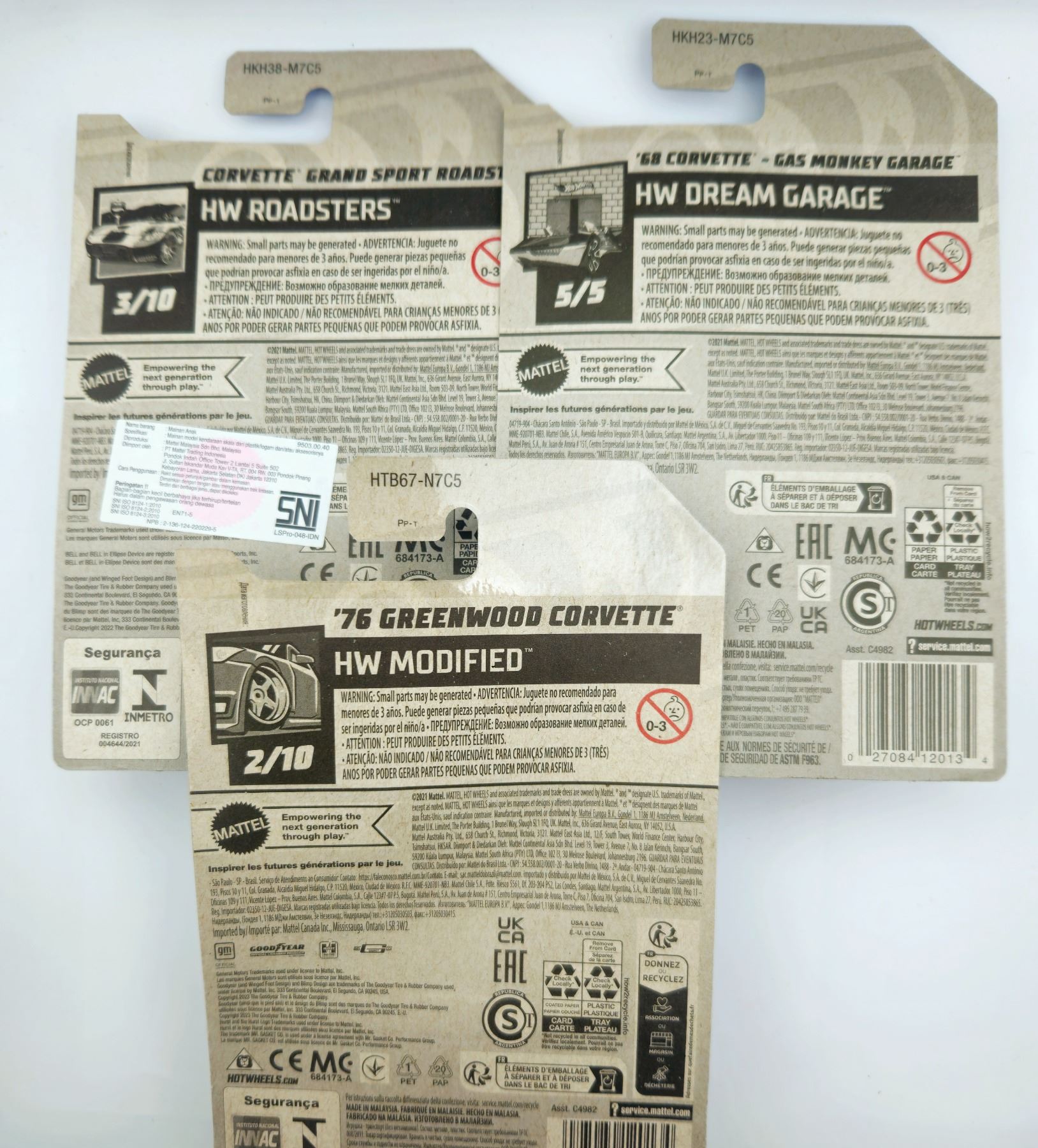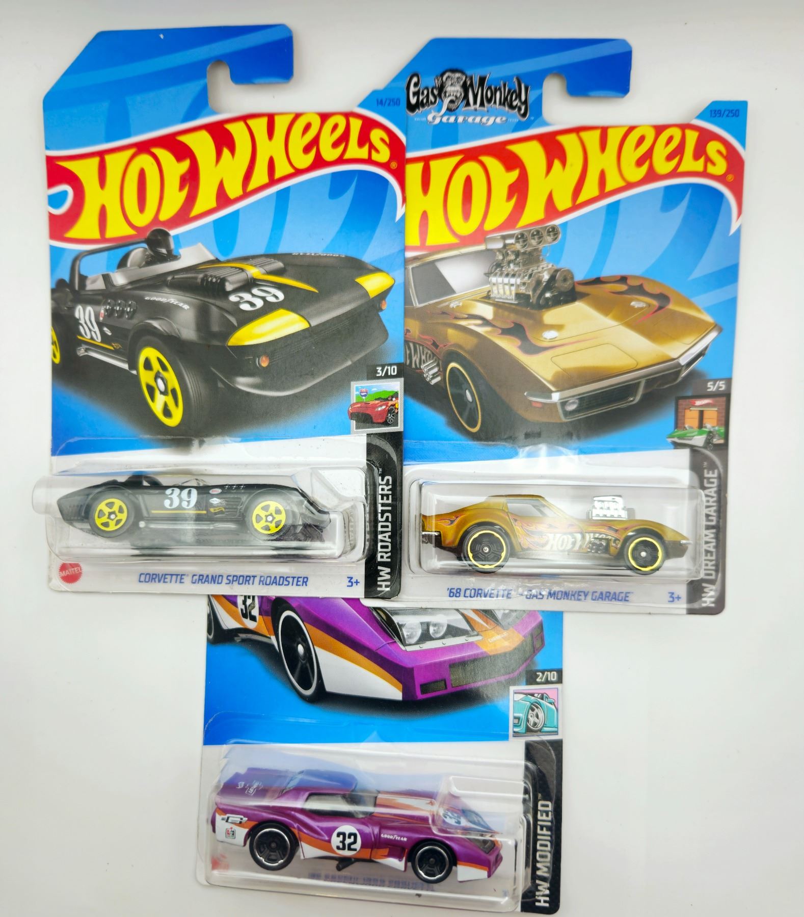 3 HOT WHEELS 68 CORVETTE, GRAND SPORT & 1976