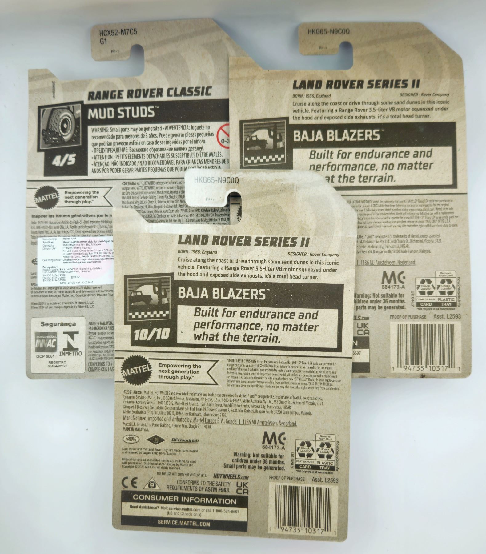 3 HOT WHEELS RANGE ROVER CLASSIC & LAND ROVER