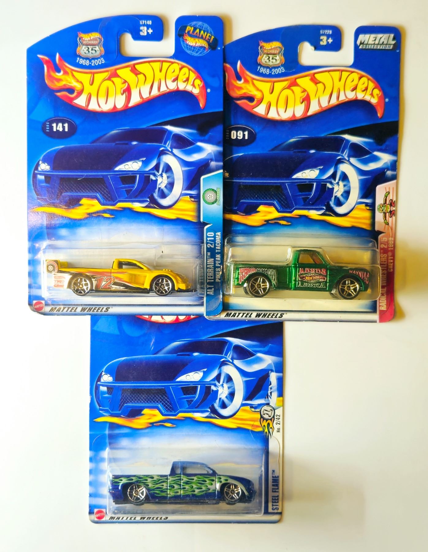 3 HOT WHEELS TACOMA, CHEVY 1969, STEEL FLAME